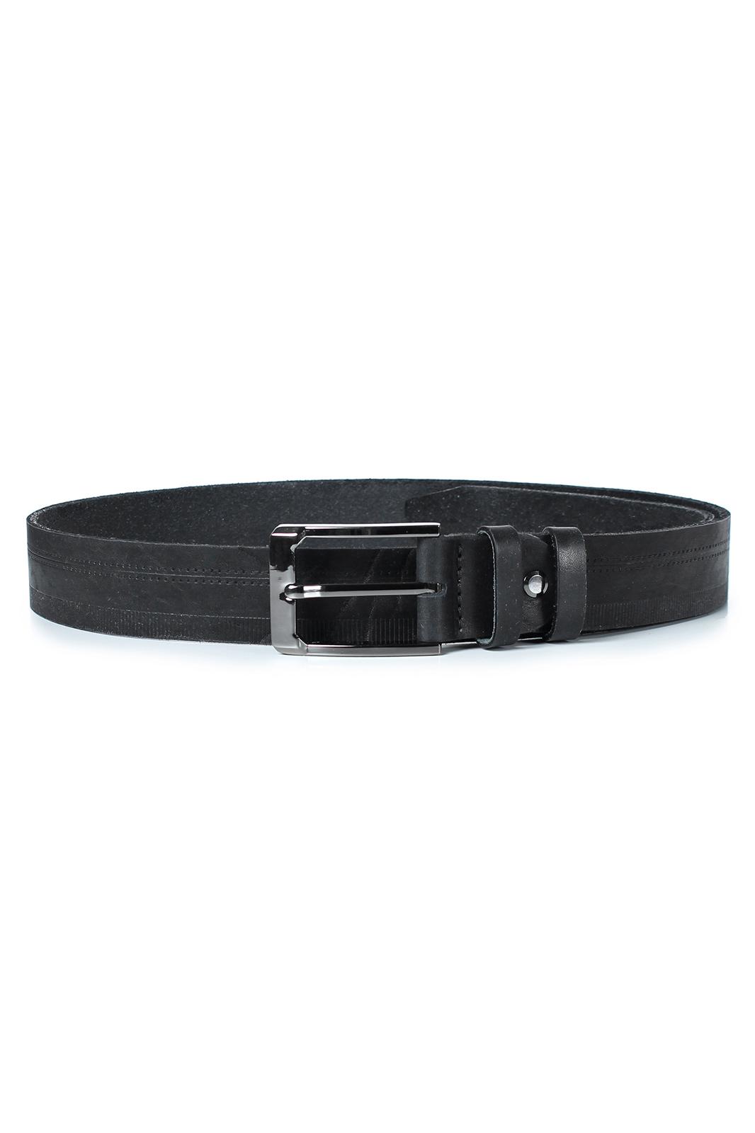 Ремень в обрезку, с обработкой изнанки, с декоративным тиснением ремня, с пряжкой и шлевкой на запряжнике, с одной передвижной шлевкой. Цвет фурнитуры-черный никель.