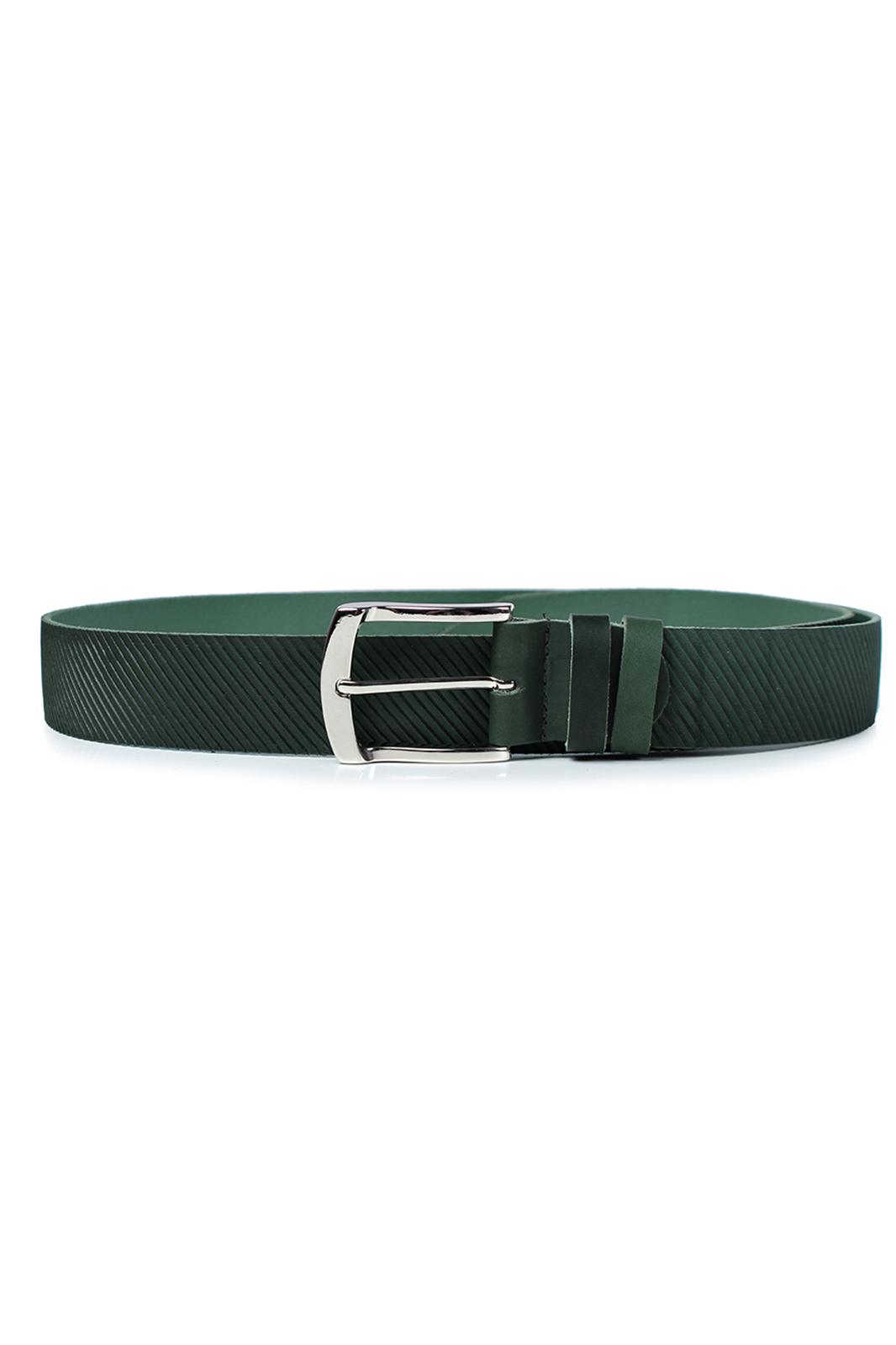 Ремень в обрезку, с обработкой изнанки, с декоративным тиснением ремня, с пряжкой и шлевкой на запряжнике, с одной передвижной шлевкой. Цвет фурнитуры-никель.