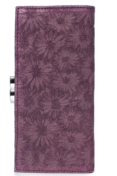 Портмоне закрывается клапаном на кнопку, с карманом на задней части корпуса, закрывающимся на рамочный замок, с открытыми карманами, с краями в загибку.