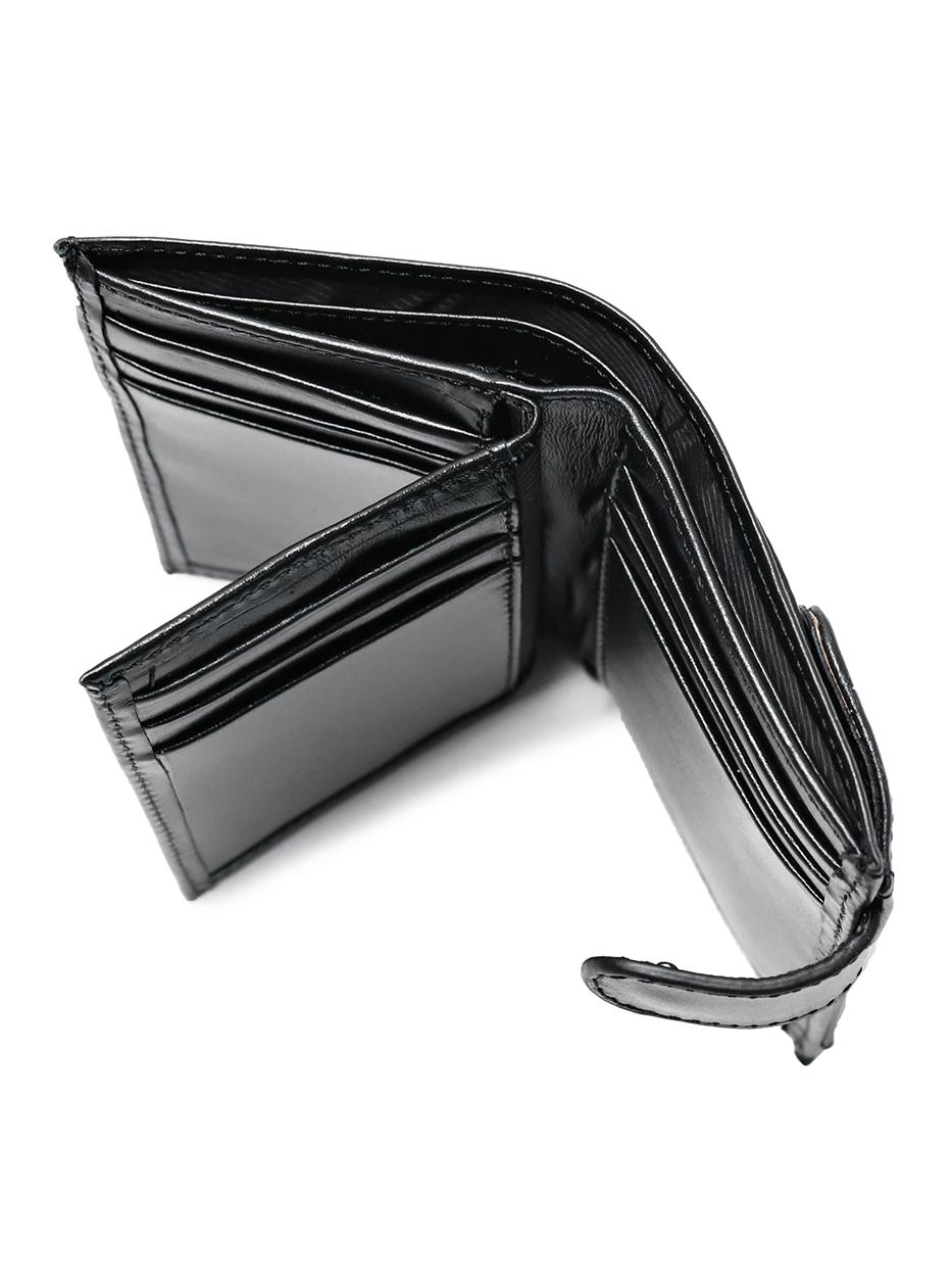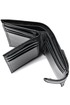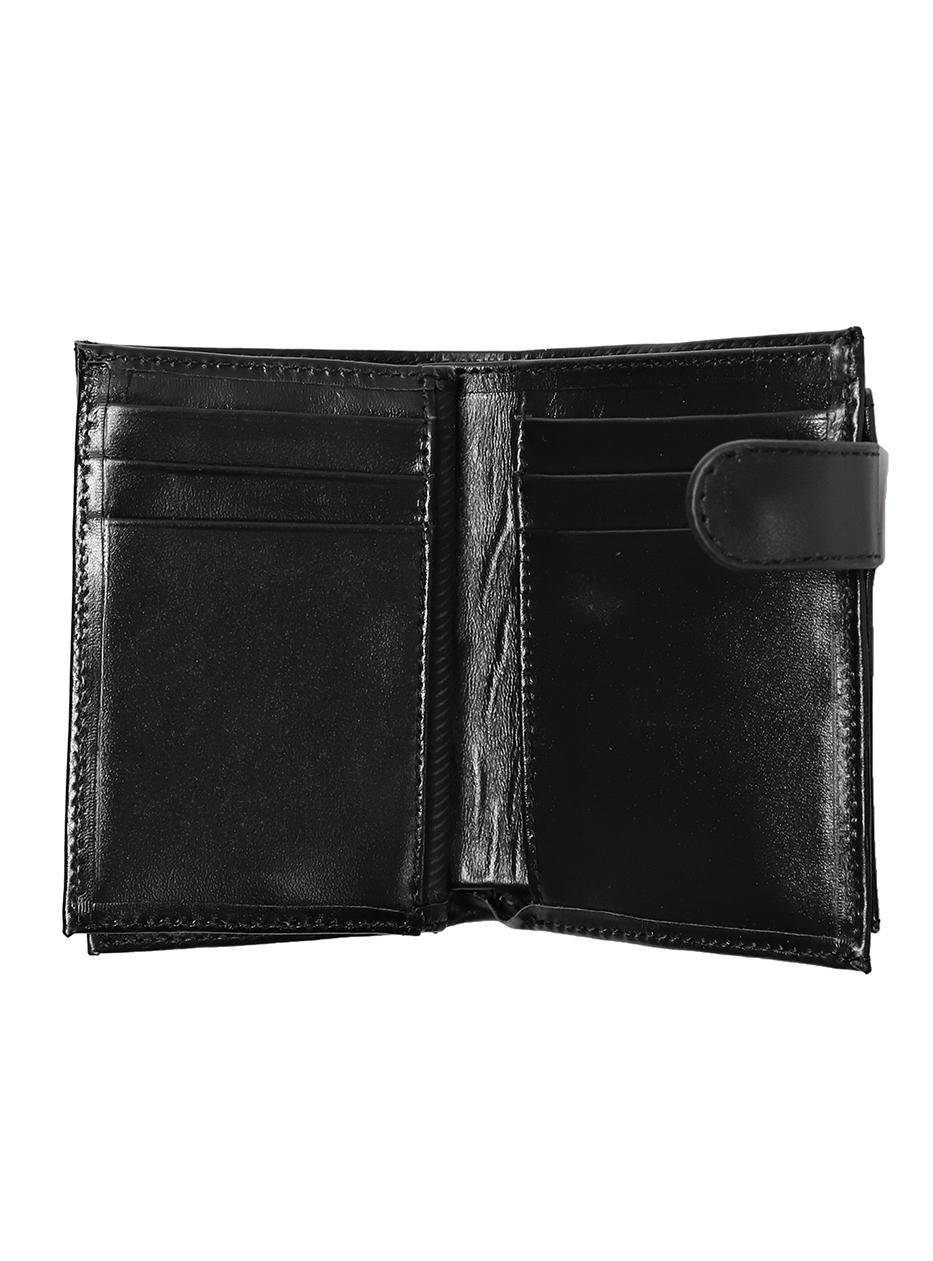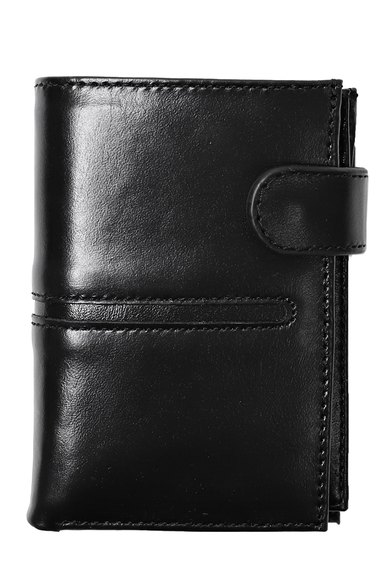 Портмоне закрывается клапаном на кнопку, с краями в загибку, с обстрочкой корпуса, с объемным карманом для монет, закрывающимся клапаном на кнопку, с декоративной вставкой на корпусе. Фурнитура - никель.