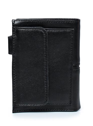 Портмоне закрывается клапаном на кнопку, с краями в загибку, с обстрочкой корпуса, с объемным карманом для монет, закрывающимся клапаном на кнопку, с декоративной вставкой на корпусе. Фурнитура - никель.