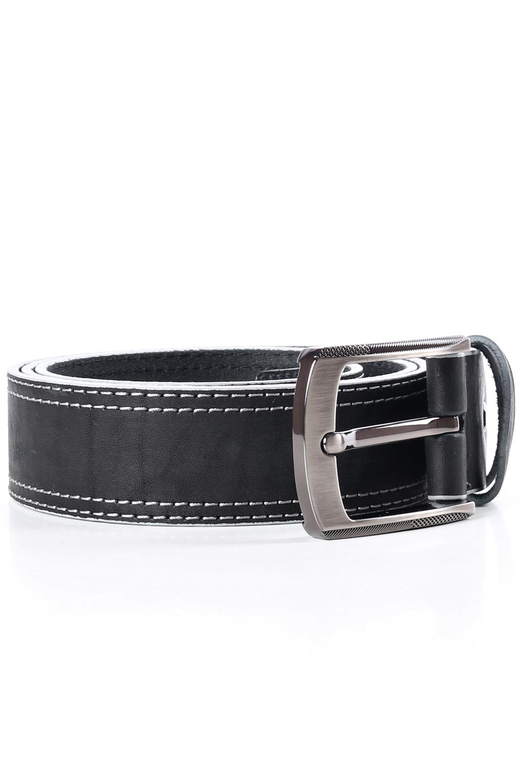 Ремень в обрезку, с обработкой краев, с обстрочкой ремня по периметру, с пряжкой на запряжнике, с двумя шлевками, с декоративной строчкой. Фурнитура - никель