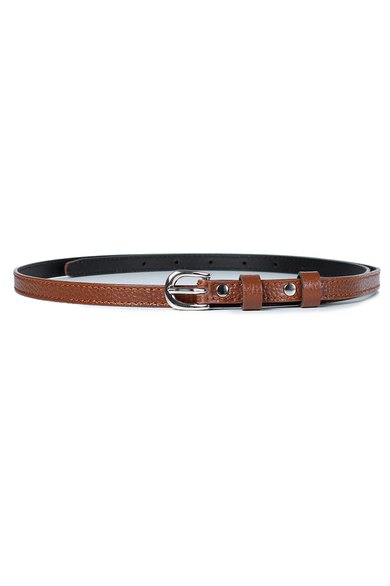 Ремень в обрезку, с обработкой краев, с обстрочкой ремня по периметру, с пряжкой и шлевкой на одном конце ремня, с одной передвижной шлевкой. Фурнитура - никель.