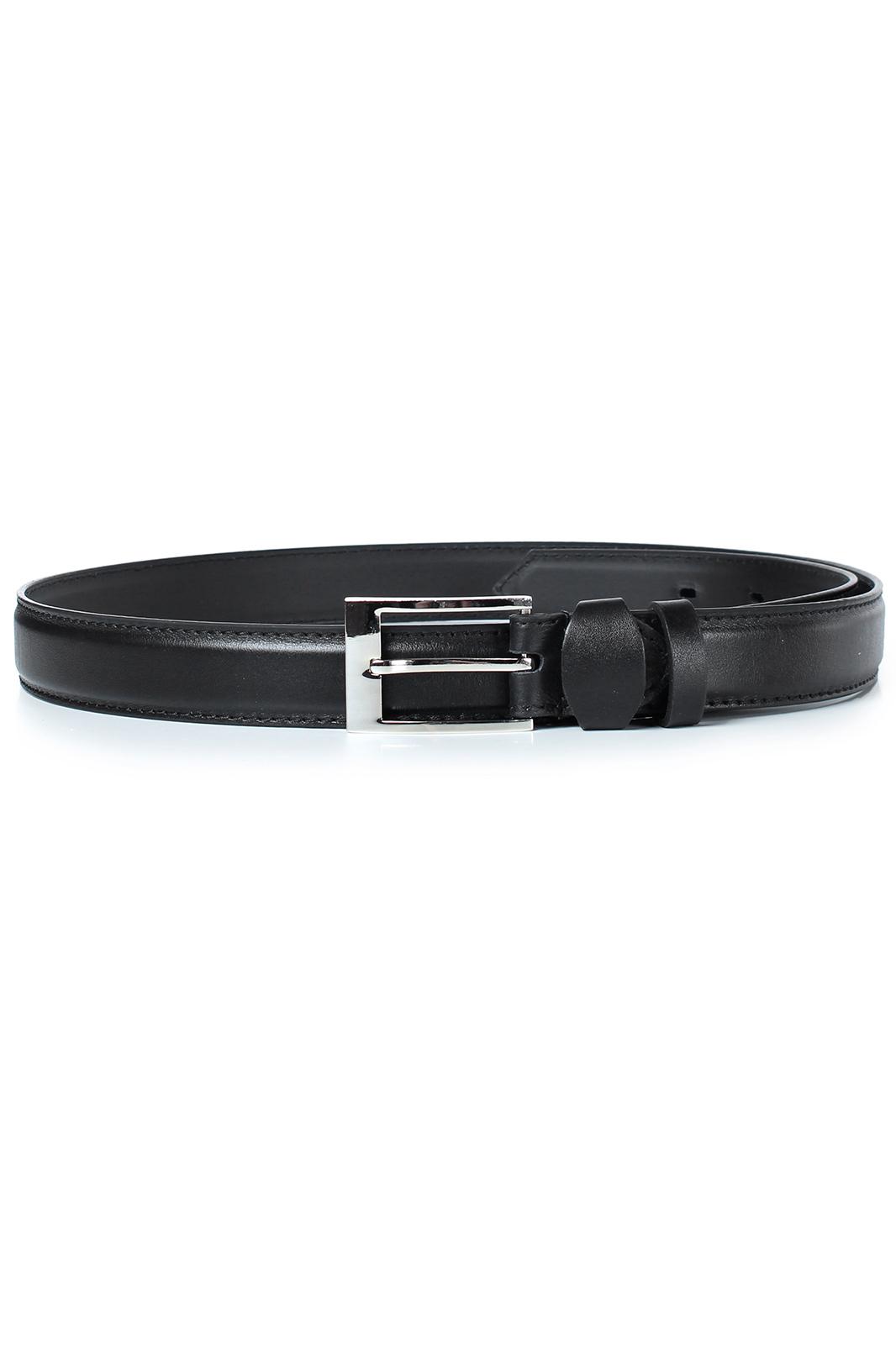 Ремень в обрезку, с обработкой краев, с обстрочкой ремня по периметру, с пряжкой и шлевкой на запряжнике, с одной передвижной шлевкой. Фурнитура - никель.