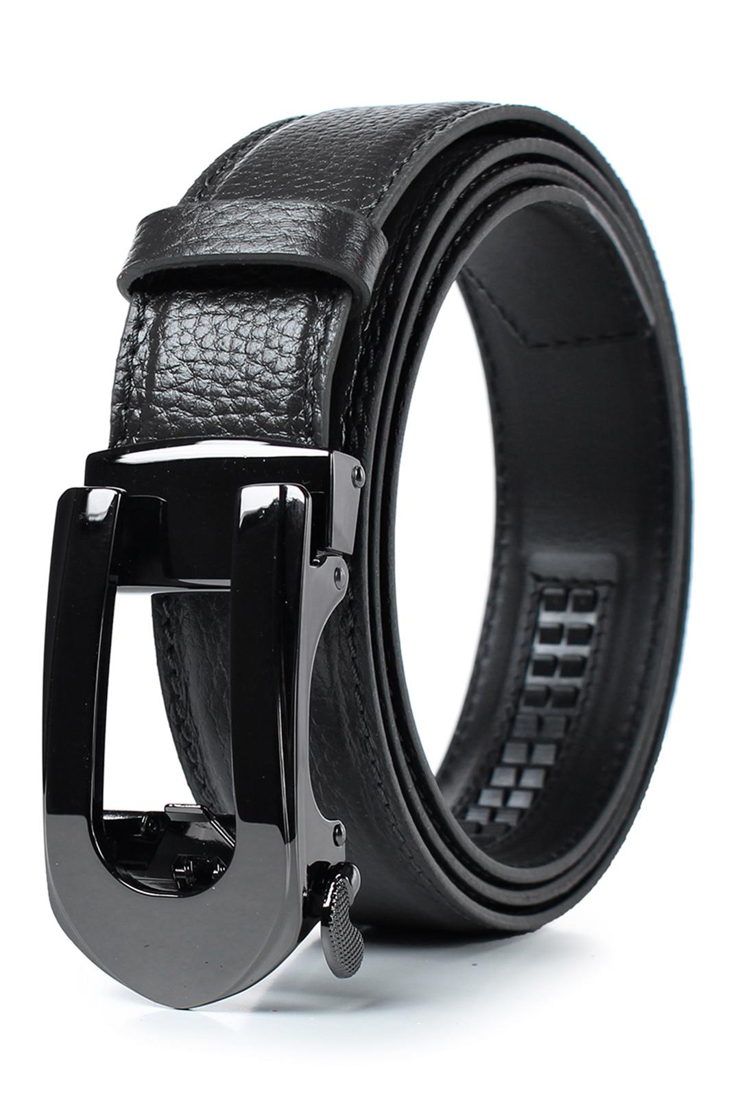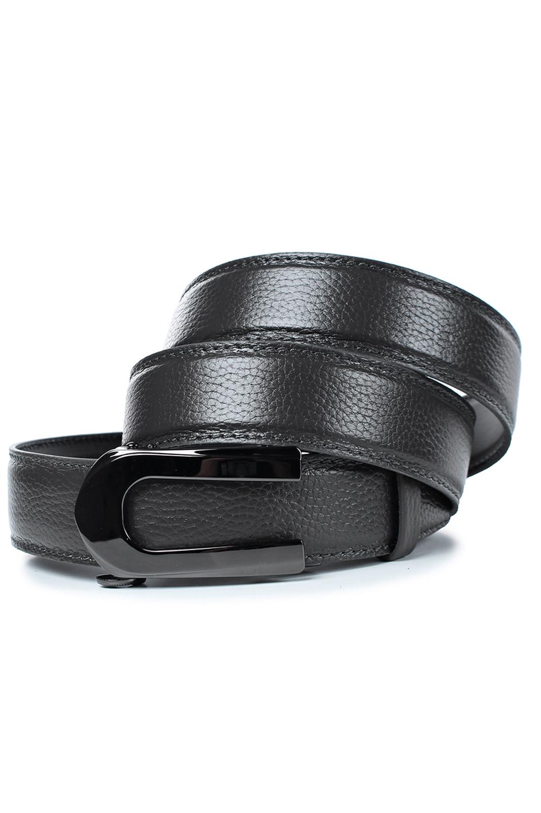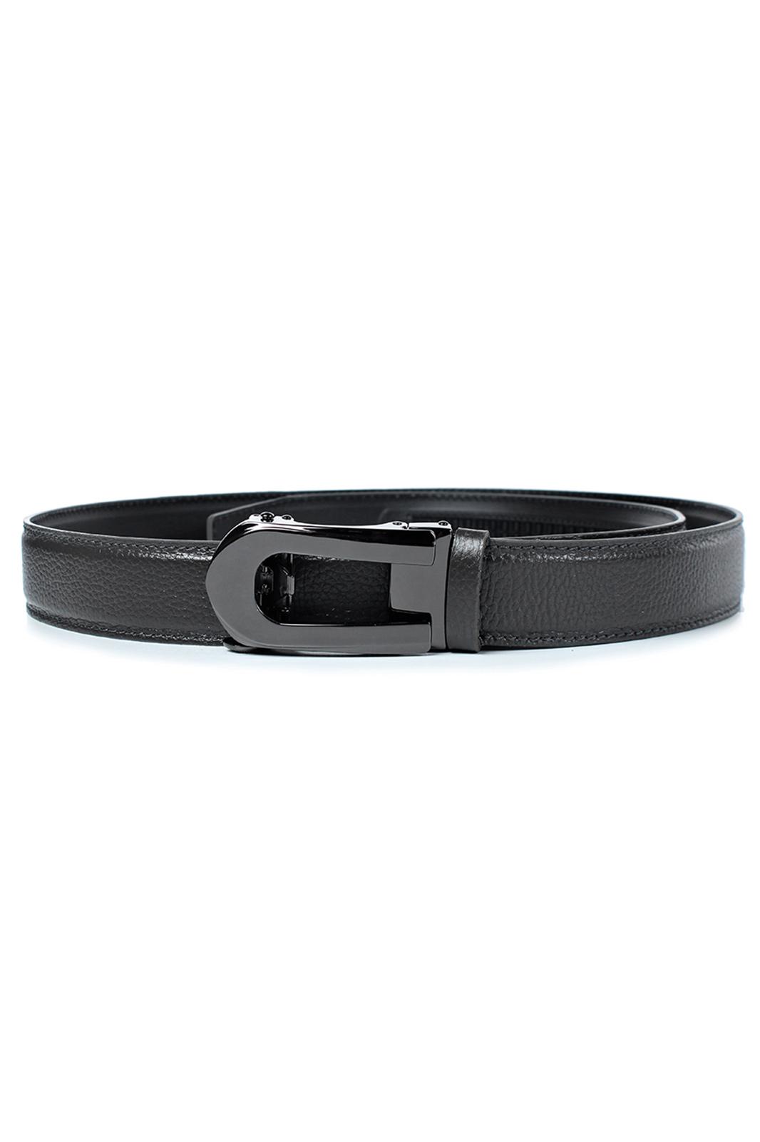 Ремень в обрезку, с обработкой краев, с обстрочкой края, с металлической пряжкой-трещоткой, с одной кожаной шлевкой. Фурнитура - черный никель.