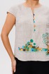 Этот стильный комплект выполнен из 100% льна, станет незаменимой частью вашего гардероба. Блузка прямого силуэта с округлым вырезом и разрезом, обработанный обтачкой с пятью пуговицами и навесными петлями. Рукав вточной крылышко.