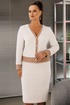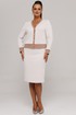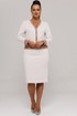 Юбка прямая, на подкладке, на поясе, слегка зауженная к низу. Длина ниже линии колена. Средний шов юбки заканчивается шлицей.
