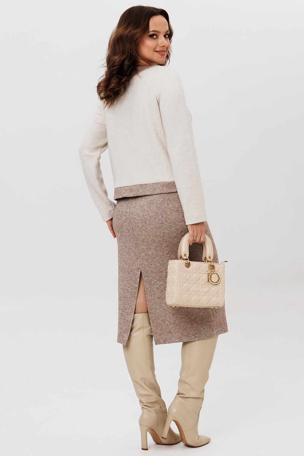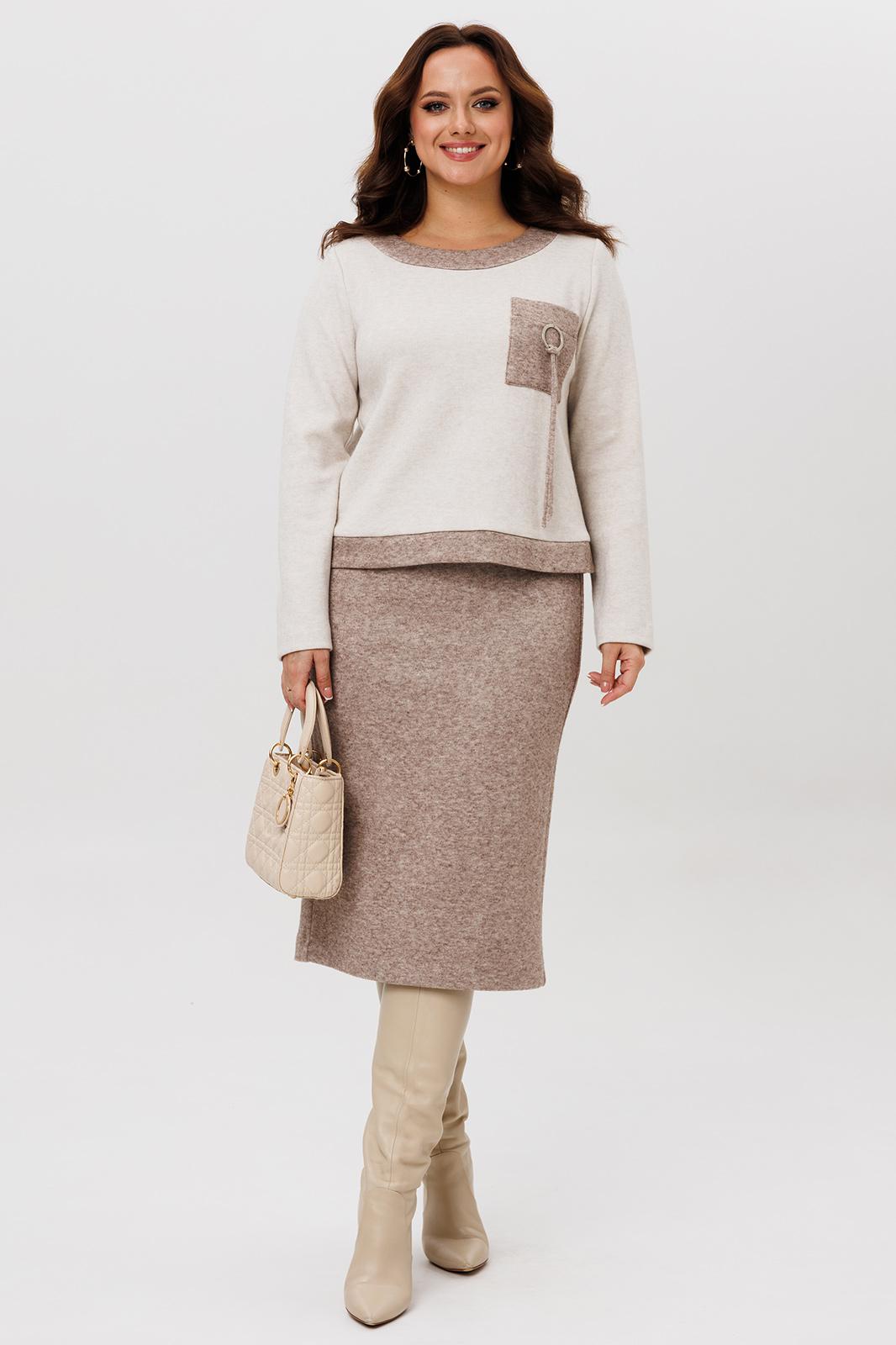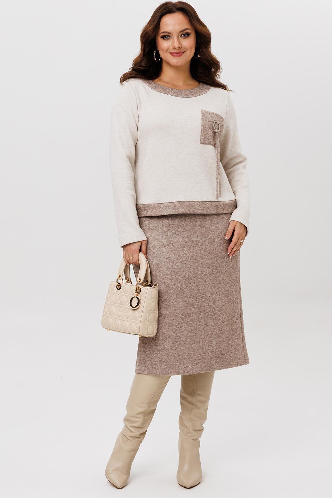 Осенний комплект джемпер и юбка , выполнен из мягкой и приятной к телу трикотажной ткани с добавлением натуральных нитей, которые обеспечивают комфорт и тепло в течение всего дня. Данный юбочный костюм идеально подходит как для офиса, так и для неформального повседневного использования.