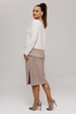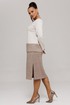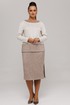 Приталенный силуэт трикотажной юбки с высокой посадкой и разрезом сбоку делает образ лаконичным,поможет всегда оставаться в тренде.