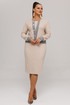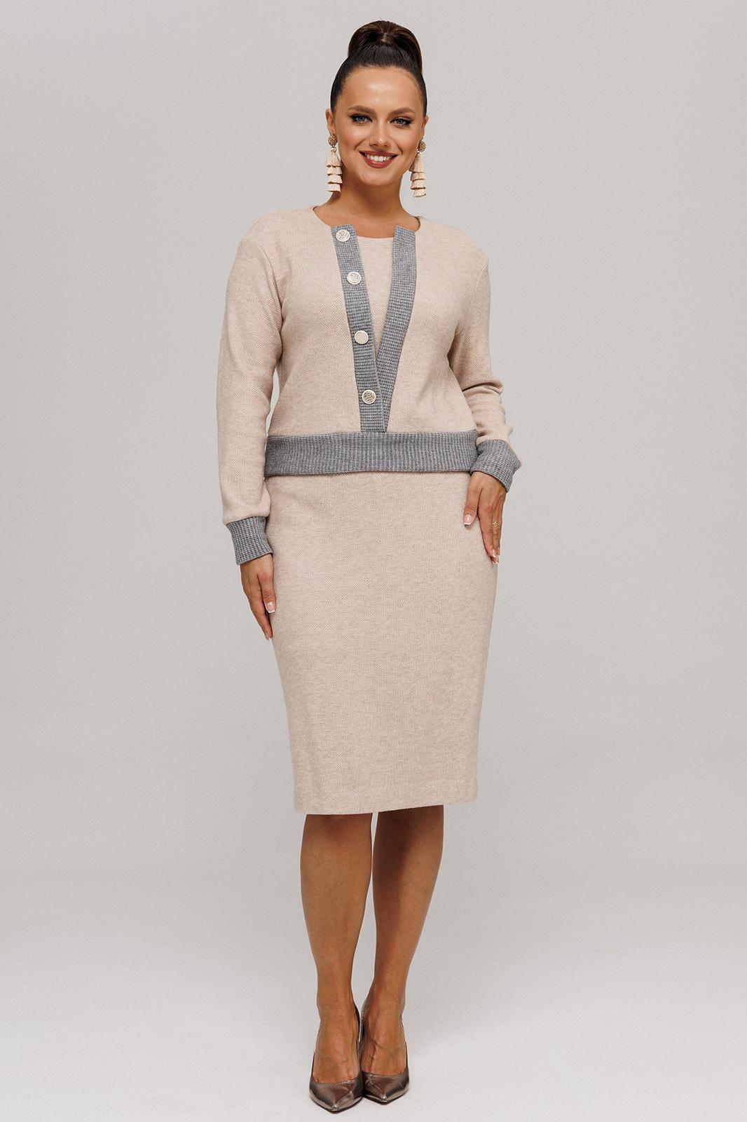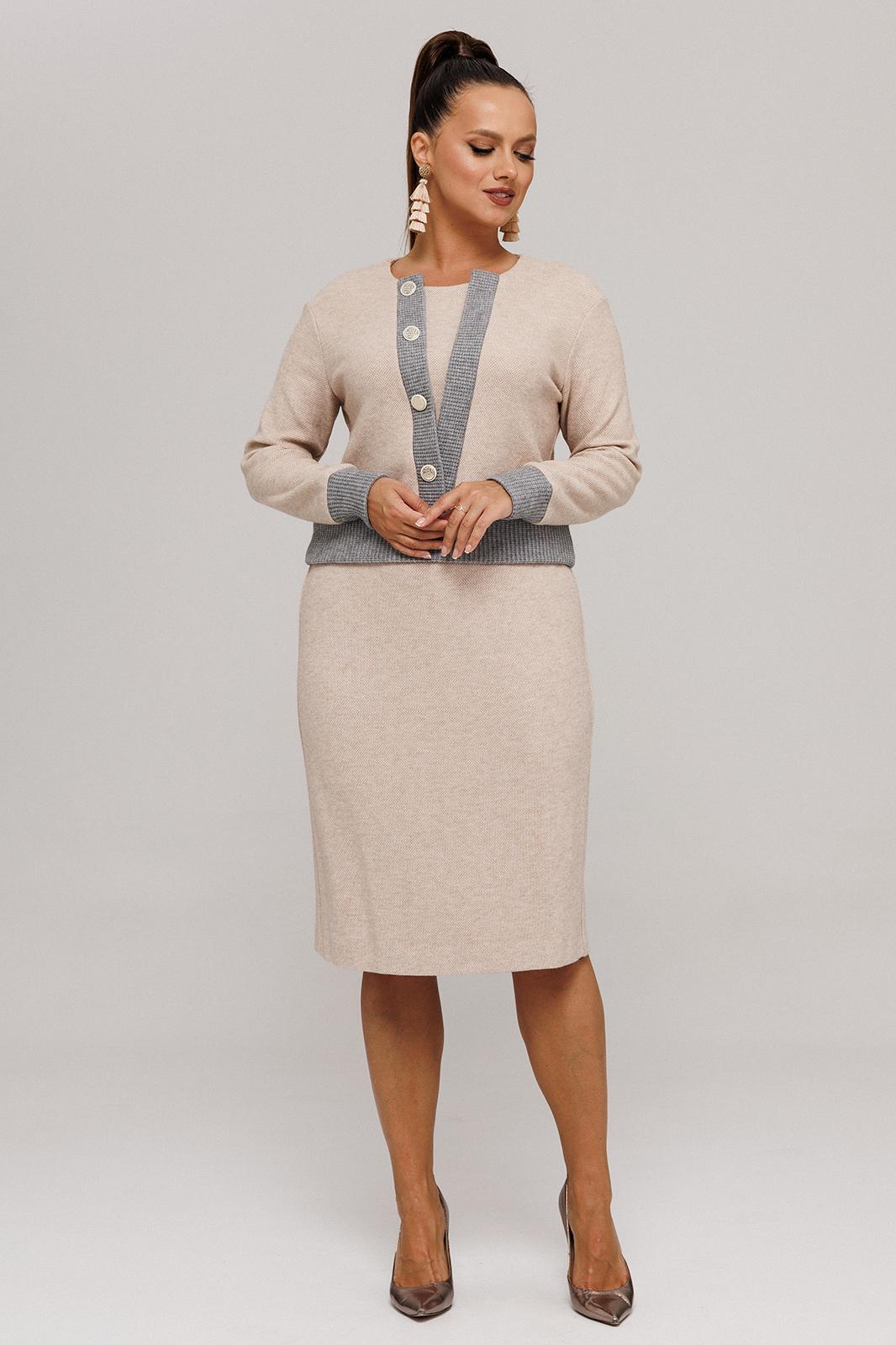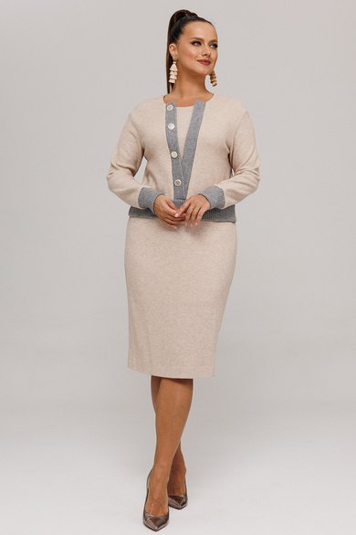 Данные женский костюм состоит из джемпера и юбки, выполнен из качественного трикотажа двух разных фактур, что обеспечивает прекрасный стиль и комфорт.