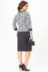 Джемпер прямого силуэта с втачным рукавом 3/4, с планкой из отделочной ткани по горловине, манжетам и низу изделия. По спинке застежка на молнию. Также декором служит брошь в виде пера.
