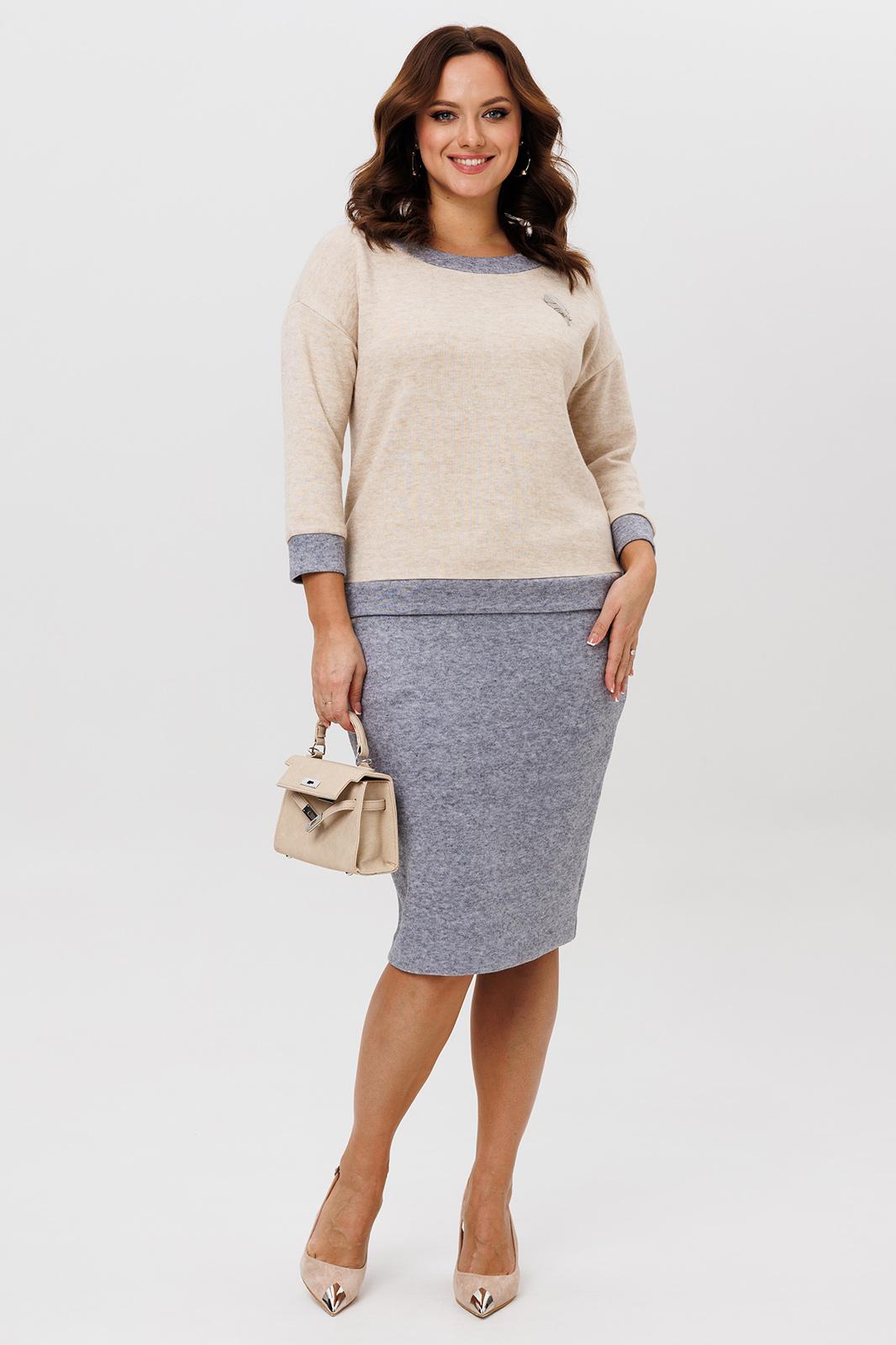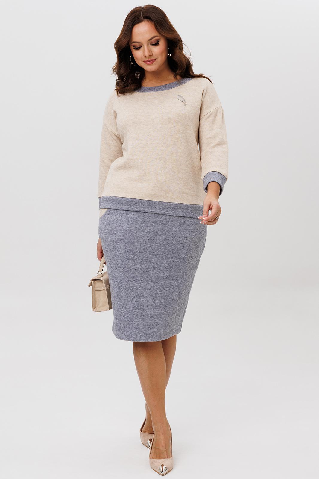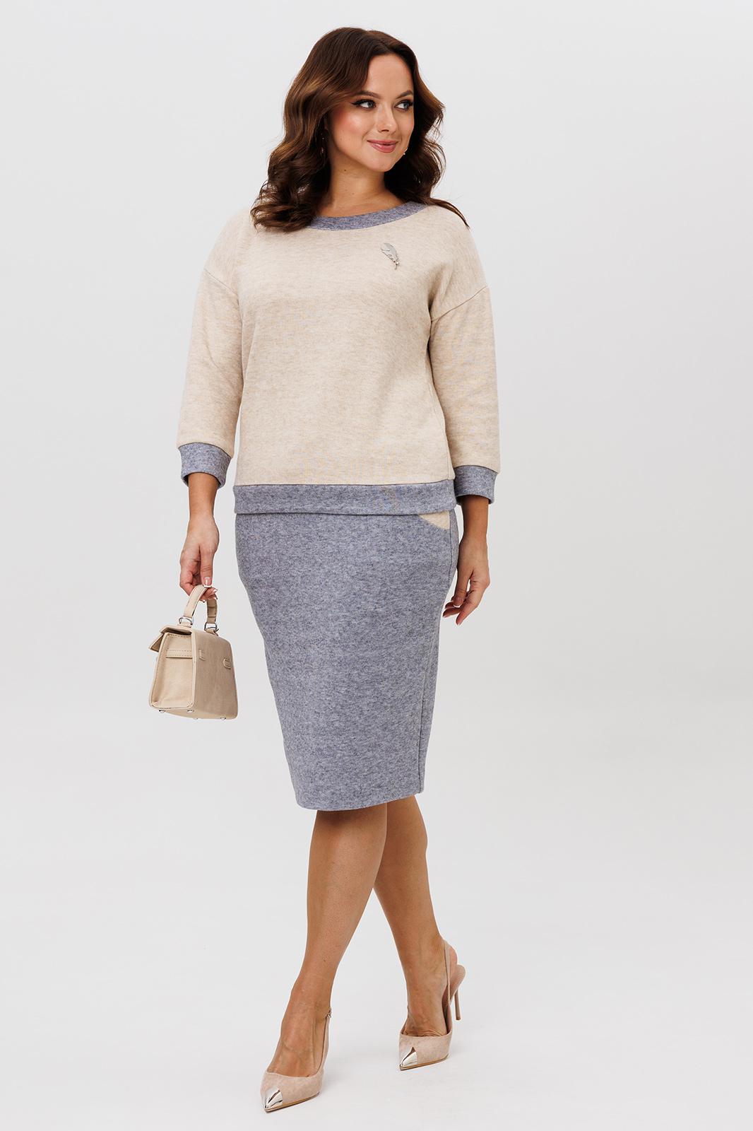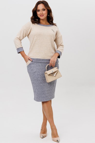 Стильный комплект, состоит из джемпера и юбки , выполнен из мягкой и приятной к телу трикотажной ткани с добавлением натуральных нитей, которые обеспечивают комфорт и тепло в течение всего дня. Данный юбочный костюм идеально подходит как для офиса, так и для неформального повседневного использования.