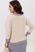 Джемпер прямого силуэта с втачным рукавом 3/4, с планкой из отделочной ткани по горловине, манжетам и низу изделия. По спинке застежка на молнию. Также декором служит брошь в виде пера.