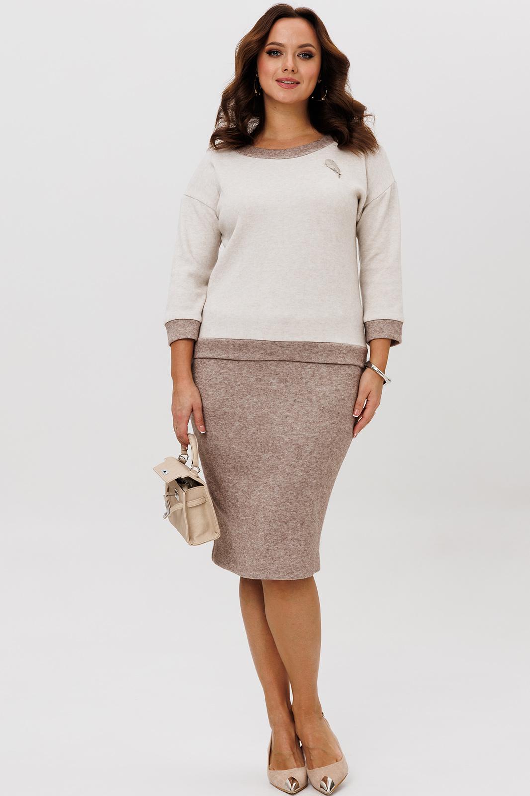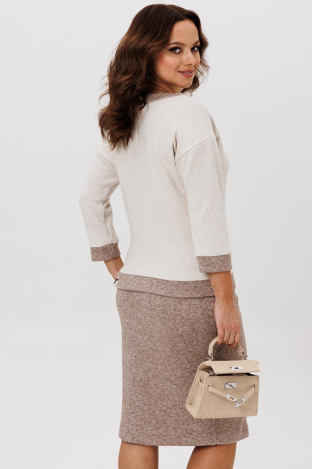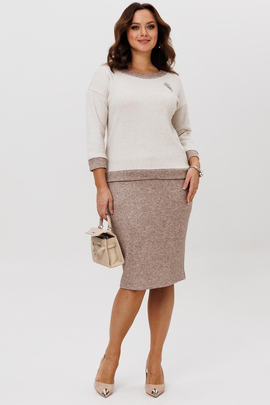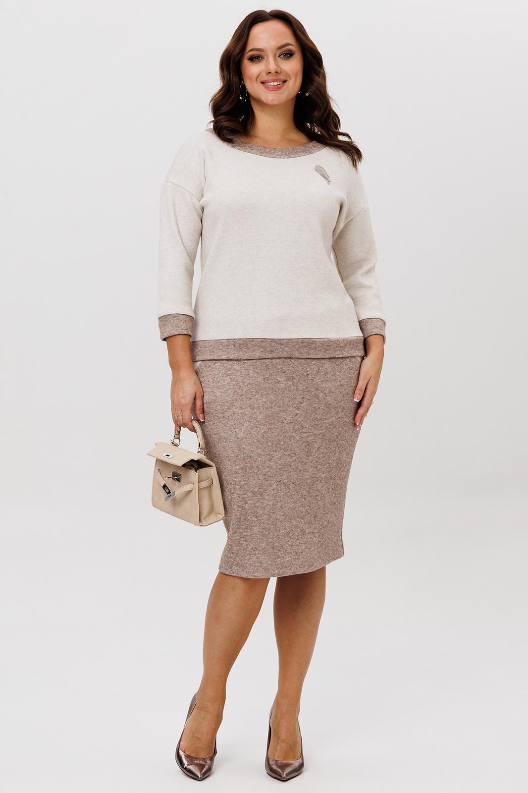 Стильный комплект, состоит из джемпера и юбки , выполнен из мягкой и приятной к телу трикотажной ткани с добавлением натуральных нитей, которые обеспечивают комфорт и тепло в течение всего дня. Данный юбочный костюм идеально подходит как для офиса, так и для неформального повседневного использования.