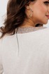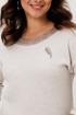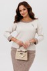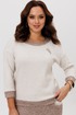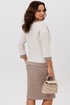 Джемпер прямого силуэта с втачным рукавом 3/4, с планкой из отделочной ткани по горловине, манжетам и низу изделия. По спинке застежка на молнию. Также декором служит брошь в виде пера.