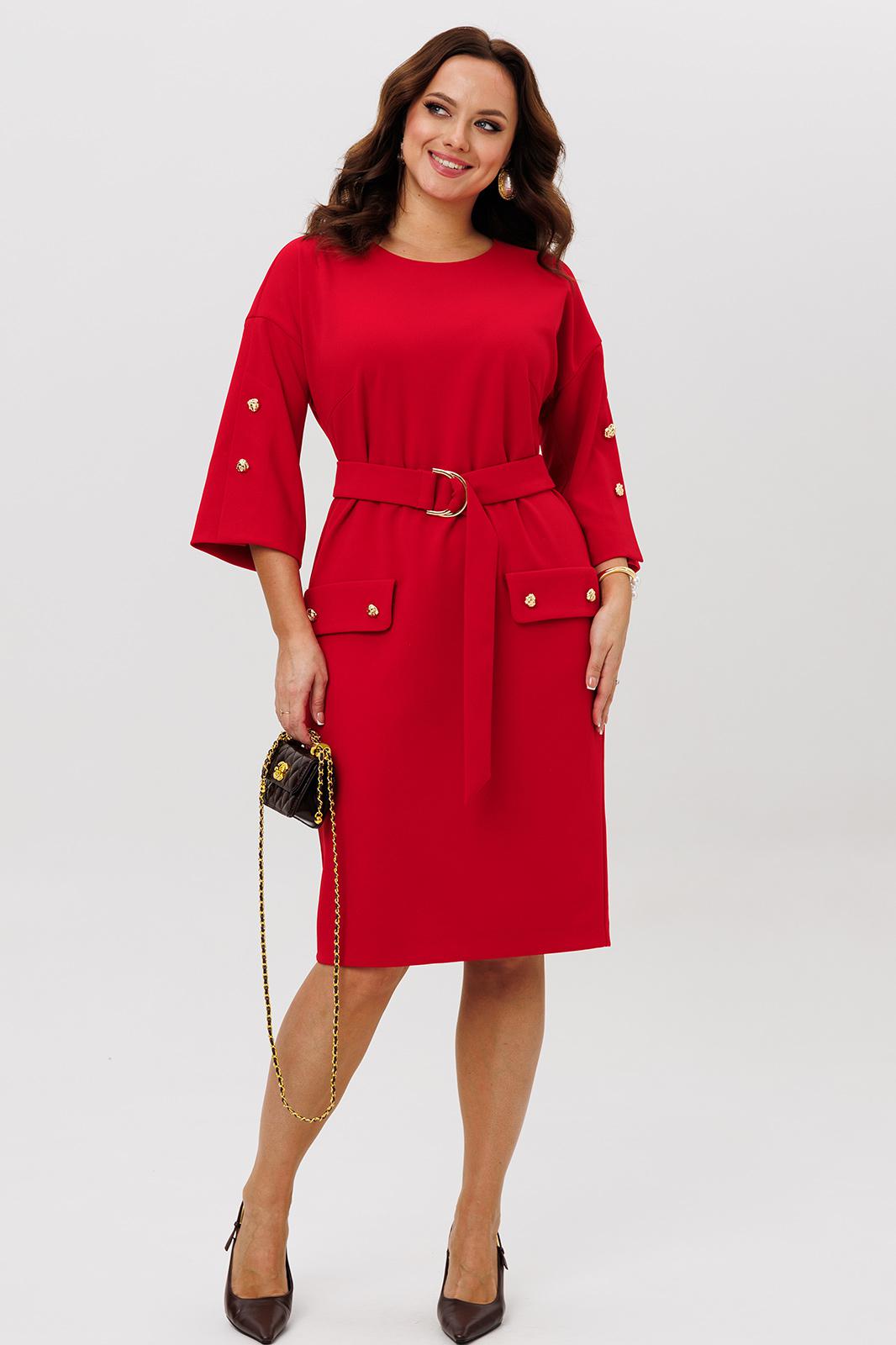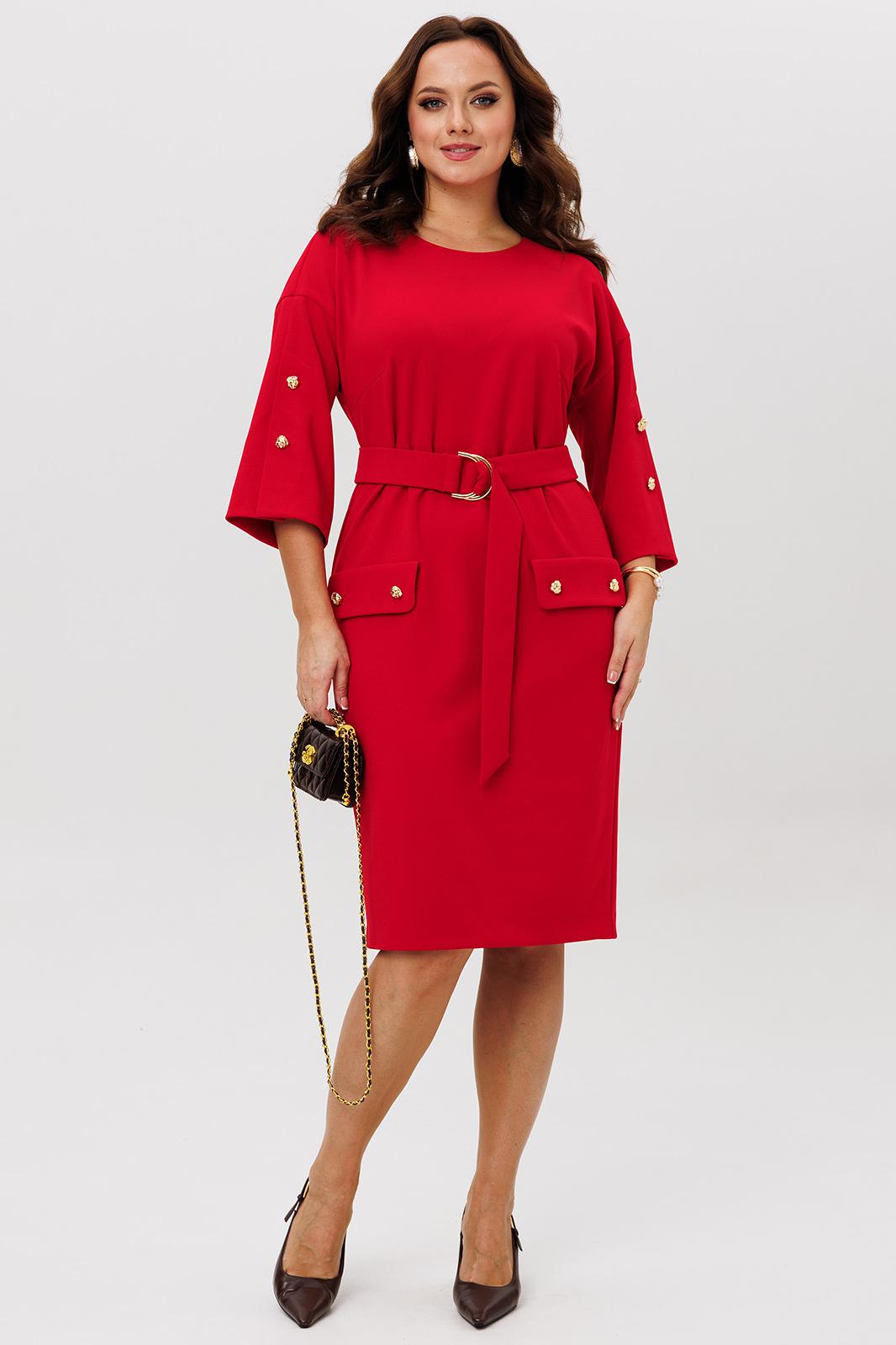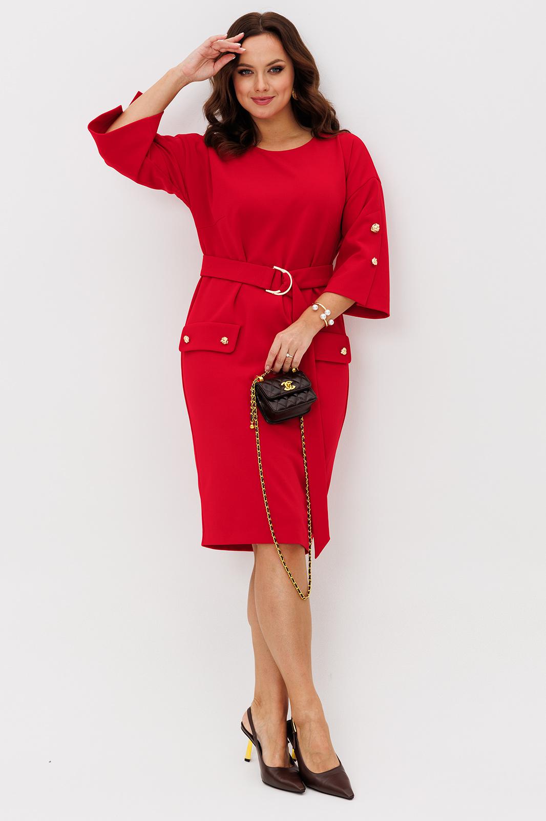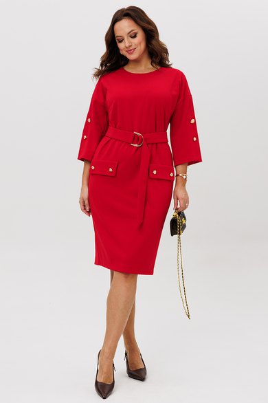 Нарядное платье из трикотажного крепа с мелким блеском станет прекрасным выбором для вечерних мероприятий, корпоративных встреч и праздничных торжеств. Особенностью этого стильного платья является его прямая модель ,которая подчеркивает женственность и элегантность. Платье подходит для полных женщин. Платье прямого силуэта с нагрудными вытачками. Рукав спущенный с декоративной шлицей и пуговицами. Декором платья являются клапаны и пуговицы. Пояс эффектно подчеркивает талию.