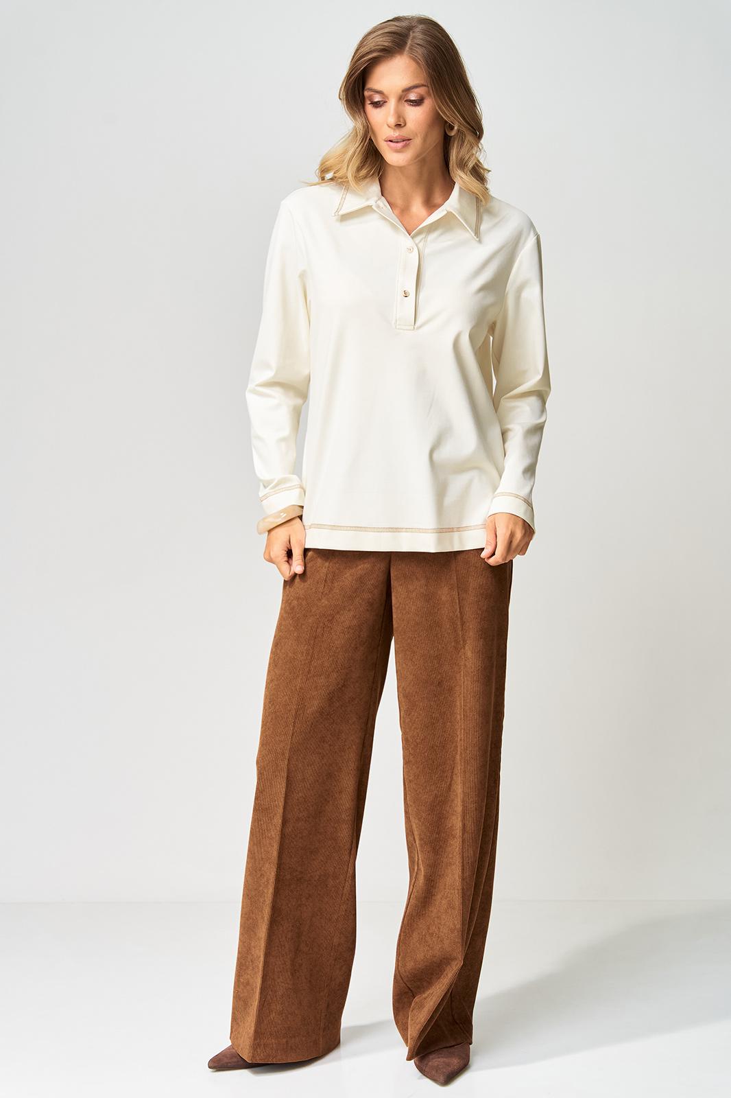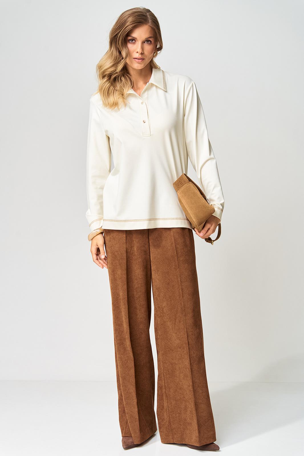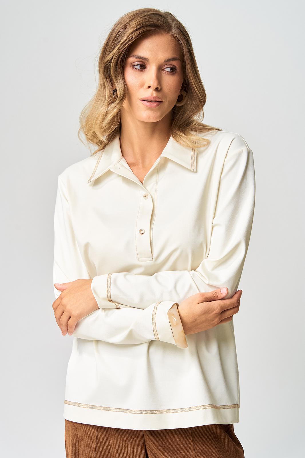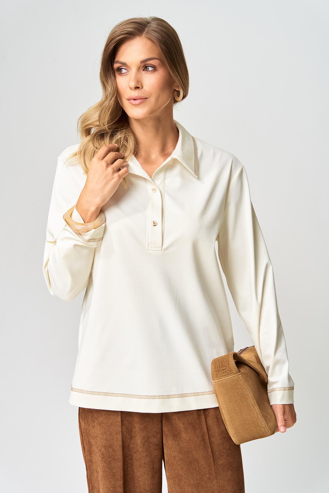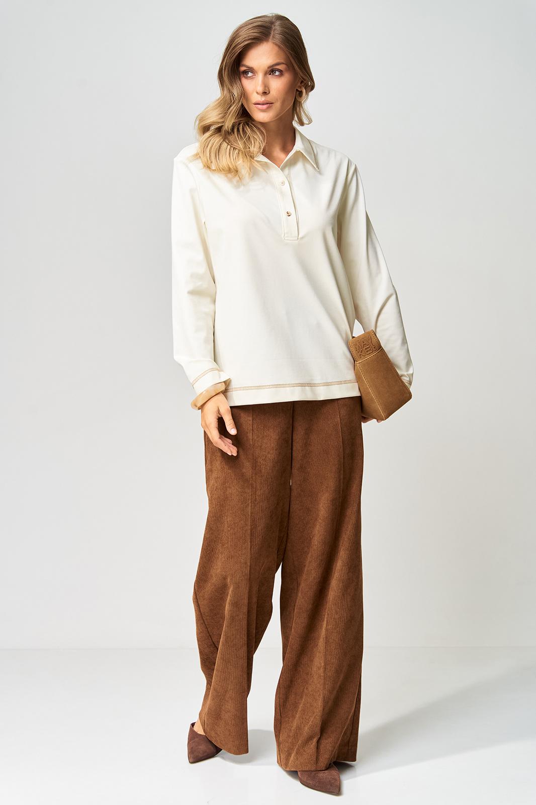 Джемпер прямого силуэта с воротником поло из плотной хлопковой ткани двухнитка. Рукав втачной одношовный. По низу изделия, по низу рукава и по воротнику проложена отделочная строчка. Длина джемпера- 66 см, длина рукава - 60 см. Данная модель прекрасно сочетается с другими моделями из нашей коллекции 35204, 15408/1, 15408, 35377. Создайте гармоничный образ, комбинируя эти изделия!
