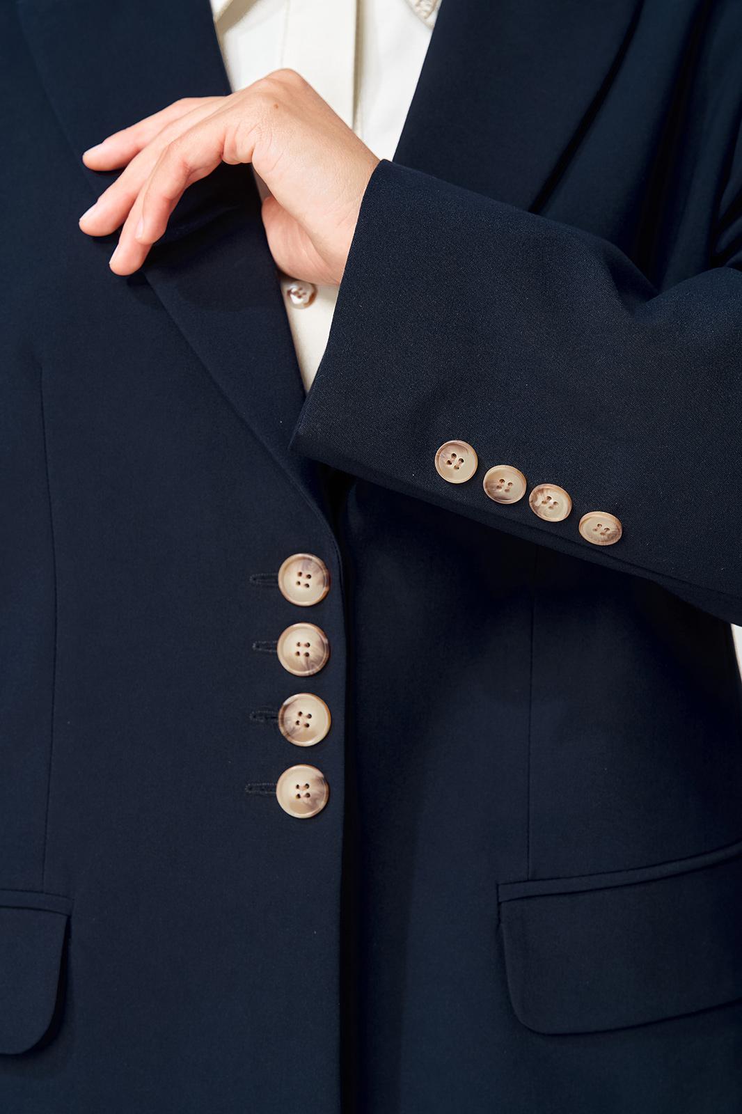 - Тип ткани: Жакет: полиэстер 70%, вискоза 25 %, спандекс 5%. Брюки: 100% полиэстер.