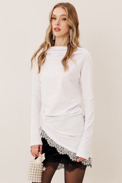 Ультрамодный лонг ассиметричного кроя с кружевом станет вашим любимым в этом сезоне! Собирайте бесконечное количество комплиментов.