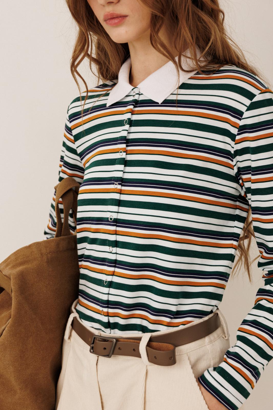 Трендовый в этом сезоне - джемпер с воротником - для тех, кто не хочет оставаться незамеченным! Лонгслив: комфортная хлопковая ткань, застежка на кнопки, вязаный воротник.