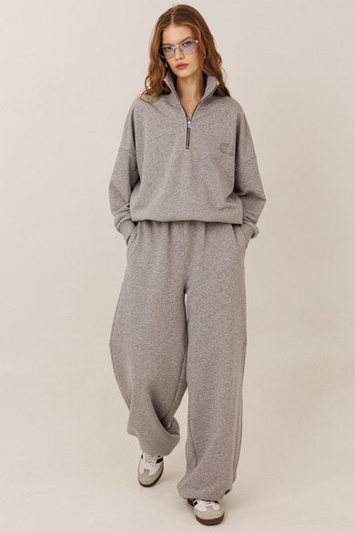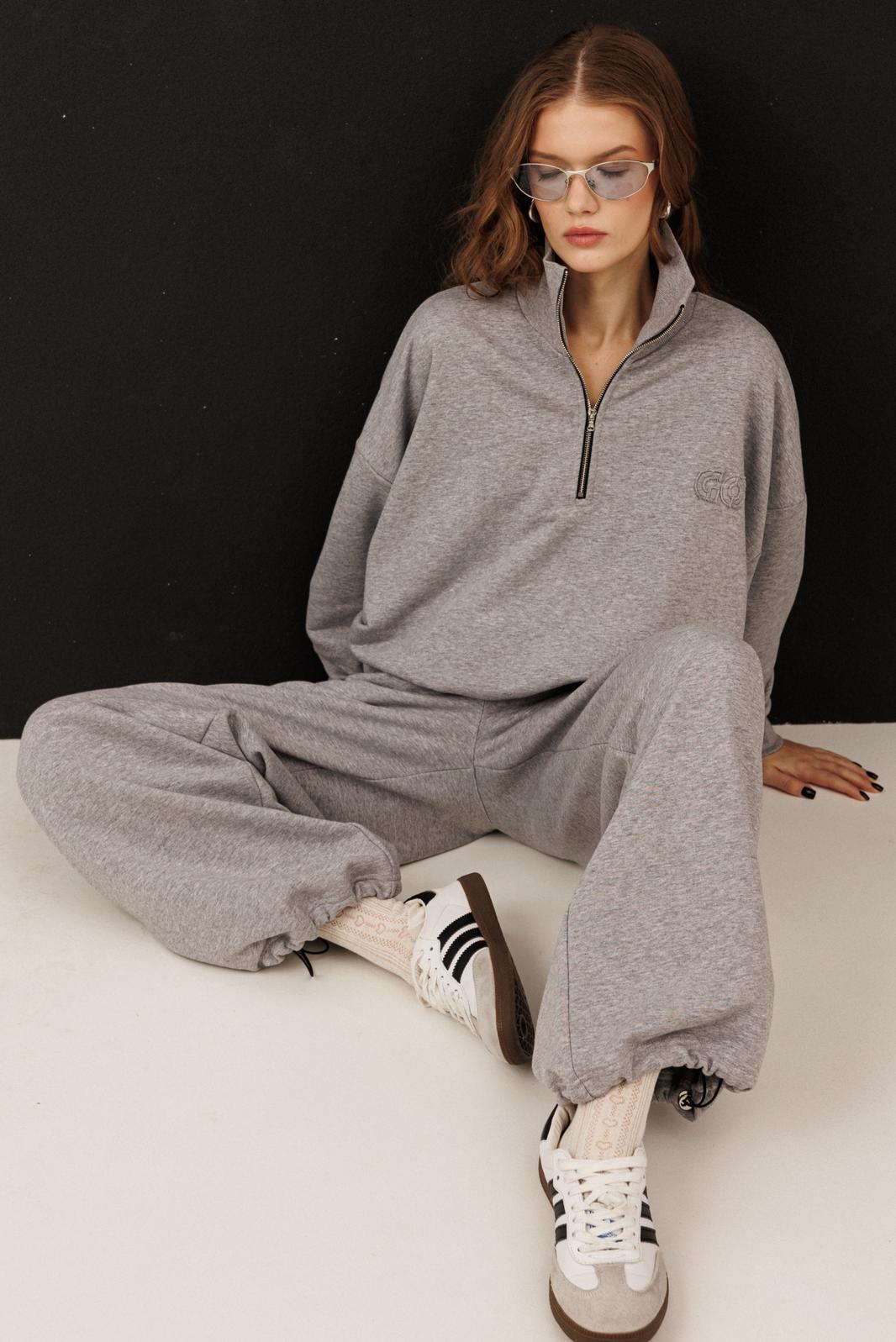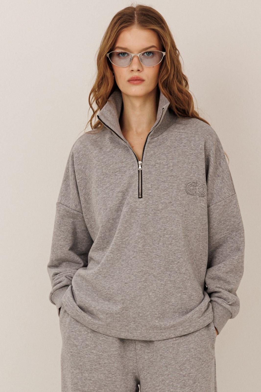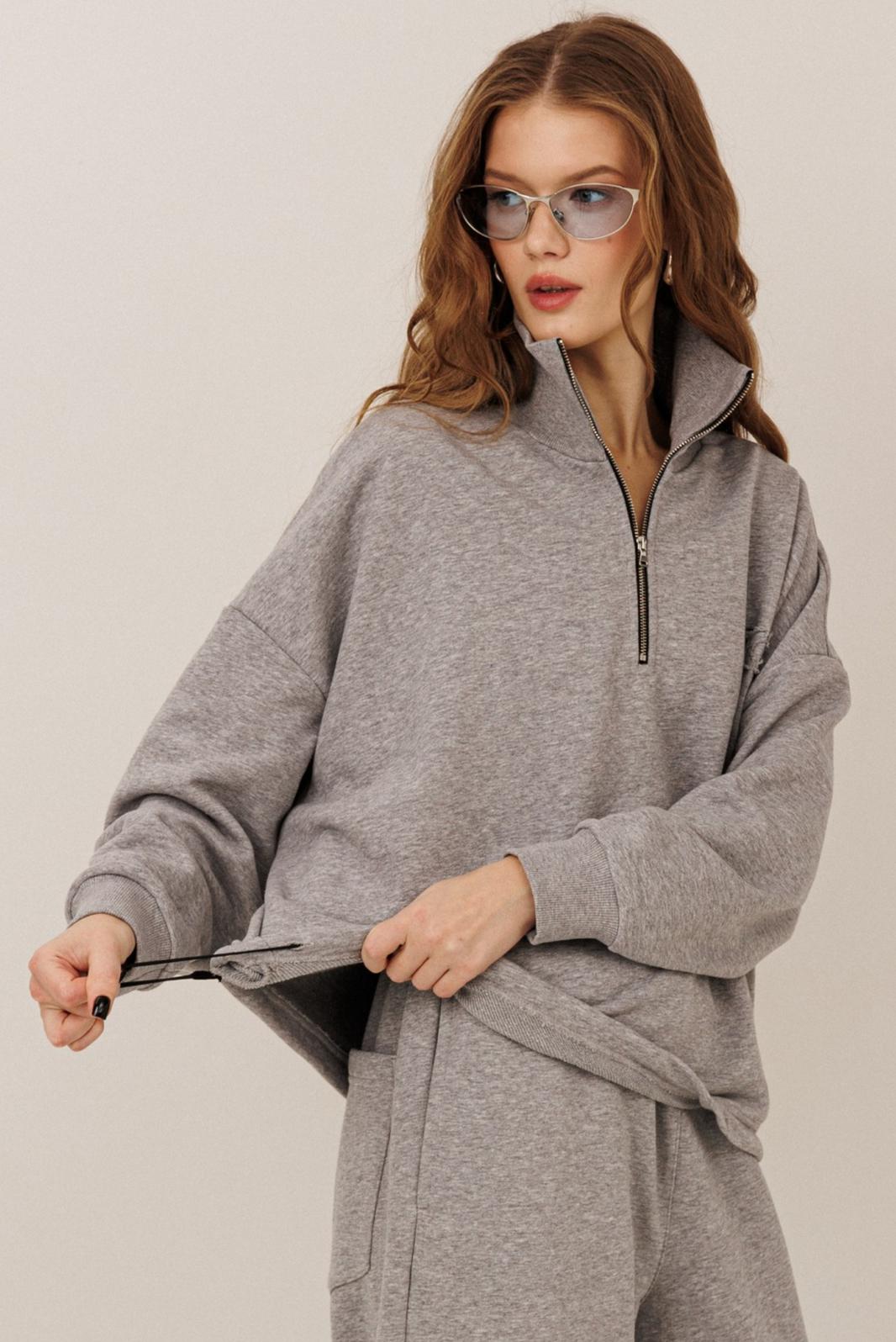Свитшот на короткой молнии — тренд сезона, сочетающий комфорт и уличную моду. Свободный крой, спущенная линия плеча и мягкий материал (футер) делают его идеальным для повседневных образов.