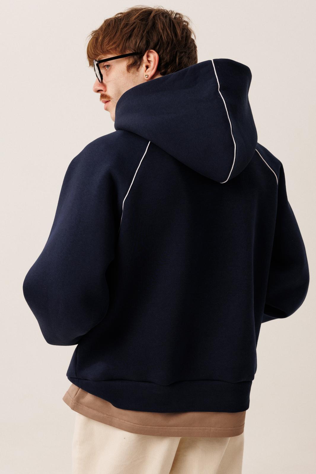 ● контрастные канты (по среднему шву капюшона, по линии втачивания рукава)