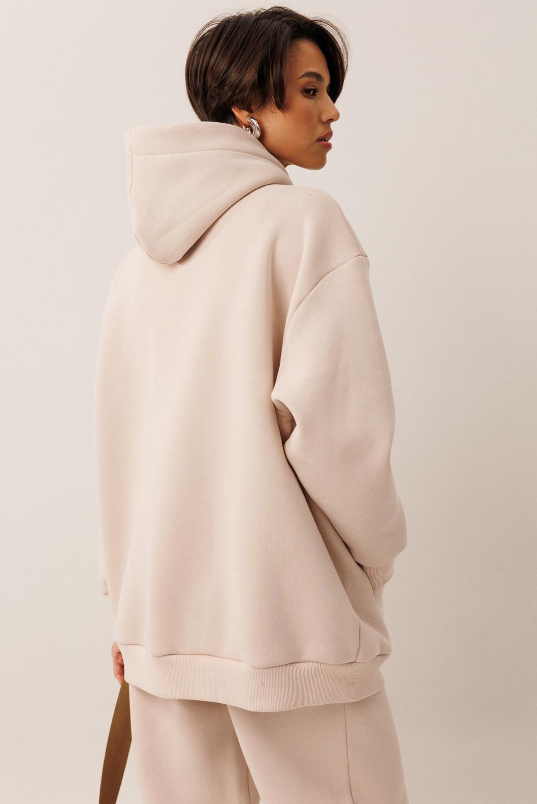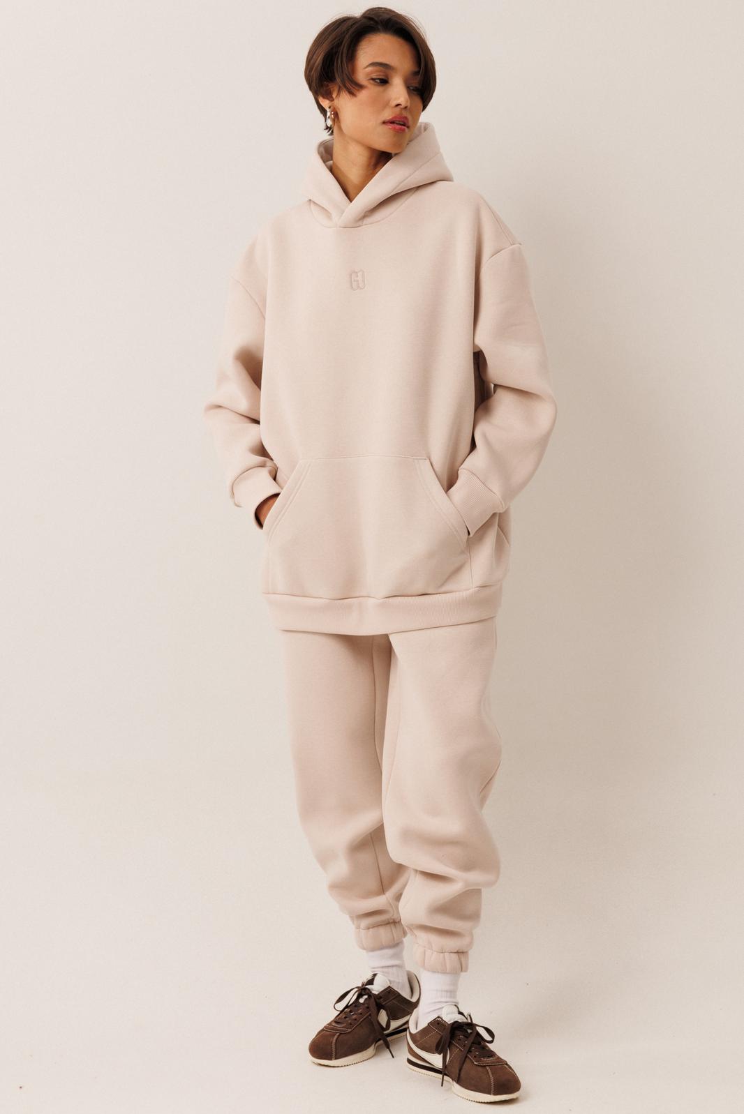 Женский тёплый уютный костюм. Подойдет для прогулок и отдыха. Изготовлен из футера с начесом, состоит из худи, покроя оверсайз и джоггеров.