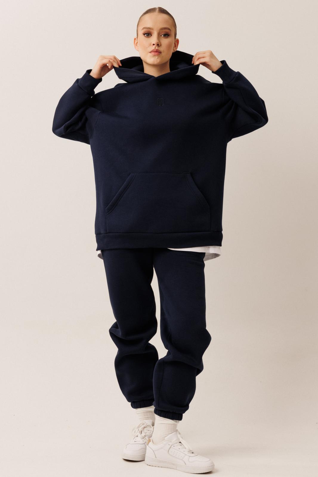 Женский тёплый уютный костюм. Подойдет для прогулок и отдыха. Изготовлен из футера с начесом, состоит из худи, покроя оверсайз и джоггеров.