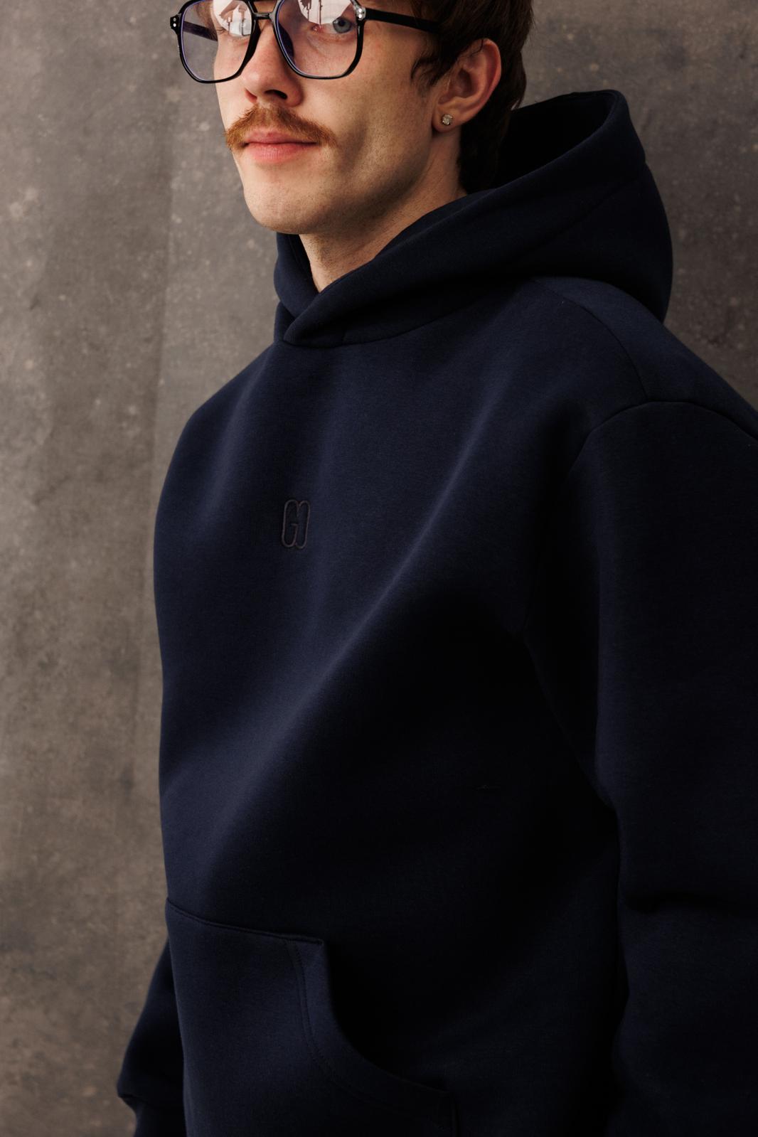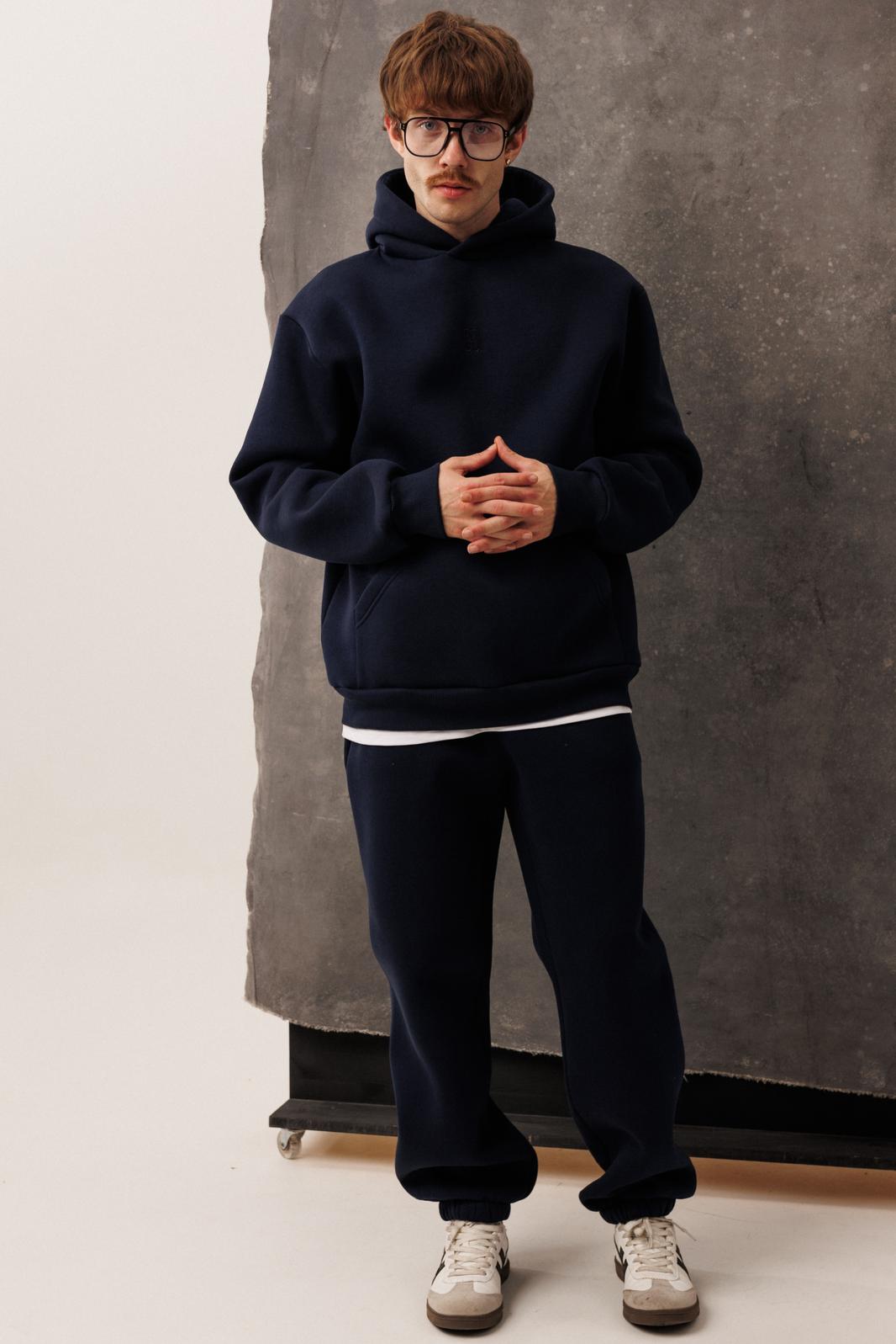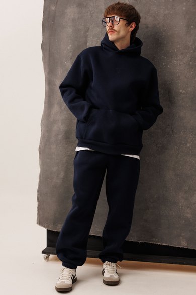 Мужской тёплый уютный костюм. Подойдет для прогулок и отдыха. Изготовлен из футера с начесом, состоит из худи покроя оверсайз и джоггеров.