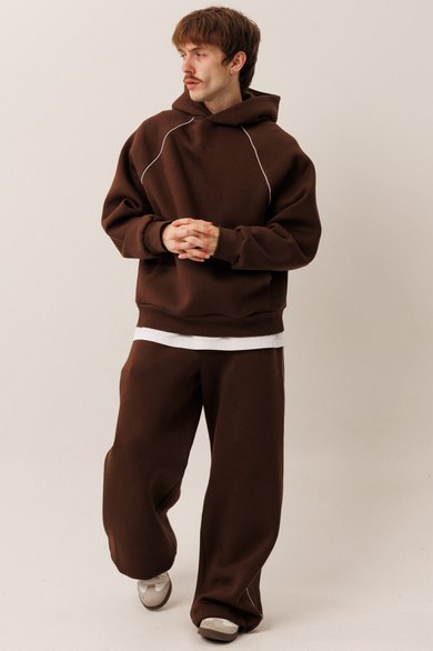 Спортивный теплый костюм для твоей комфортной жизни. Изготовлен из футера с начесом, состоит из оверсайз худи и брюк.
