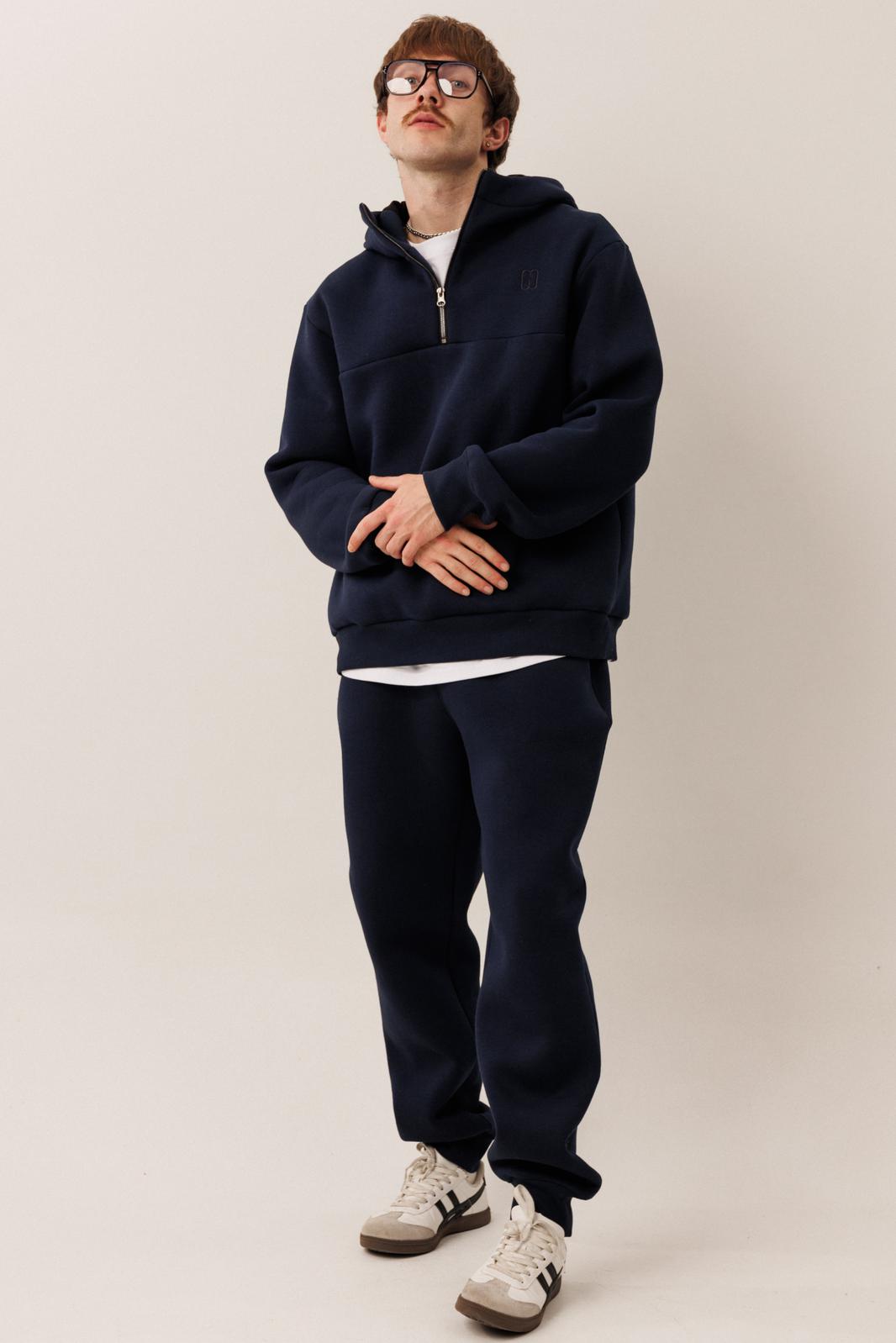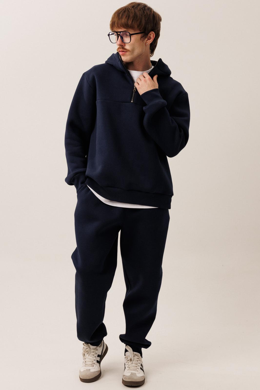 Этот спортивный костюм отлично подойдет для дома, прогулок, путешествий и отдыха. Сделан из теплой, комфортной ткани. Состоит из джемпера и брюк. Джемпер имеет двойной капюшон и короткую застежку - молнию черного контрастного цвета по центру переда. На переде с левой стороны выполнена вышивка в цвет ткани, а также расположена горизонтальная кокетка. Джемпер имеет прямой силуэт. Низ джемпера и манжеты выполнены из кашкорсе. Брюки зауженные к низу с притачным поясом (резинка и шнурок внутри). Брюки с боковыми карманами. По низу брюк – манжеты.