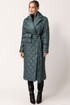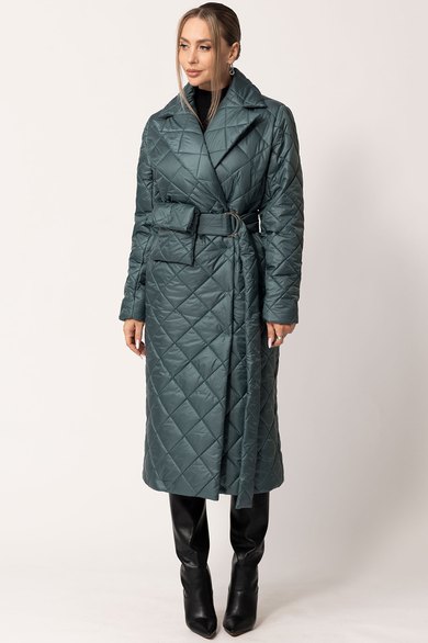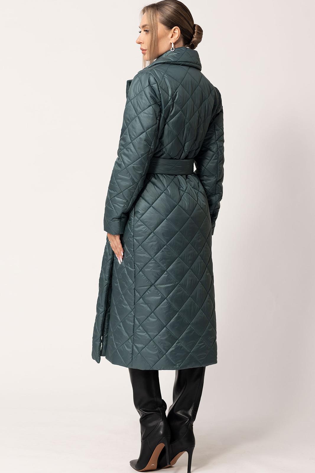 Пальто утепленное с центральной двубортной застежкой на пришивные кнопки, отложным воротником и лацканами. В боковых швах- карманы. Спинка цельная. Рукав втачной, двухшовный. Пальто со съемным поясом и декоративной сумочкой.
