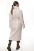 Пальто утепленное с центральной двубортной застежкой на пришивные кнопки, отложным воротником и лацканами. В боковых швах- карманы. Спинка цельная.. Рукав втачной, двухшовный. Пальто со съемным поясом и декоративной сумочкой.