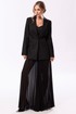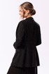 Жакет с центральной застежкой на петли и пуговицы, без воротника, с втачным воротником и отложными лацканами пиджачного типа. По переду с фигурными подрезами, рельефами и талиевыми вытачками. По спинке со средним швом, рельефами, выходящими из проймы. Рукав втачной, длинный.