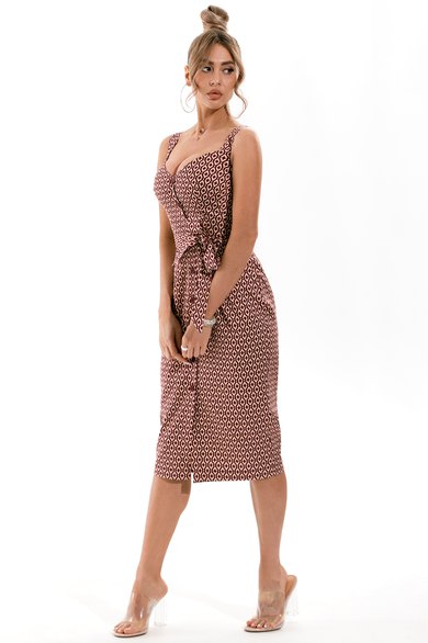 Цветовая гамма для верха, подкладки, фурнитуры, отделки: платье из ткани с геометрическим рисунком.