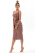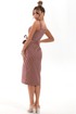 Описание внешнего вида: Платье с центральной застежкой на петли и пуговицы, на широких бретелях. Платье отрезное по линии талии. Верхняя часть переда с талиевыми вытачками, нижняя часть переда с карманами и односторонними складками по талии. Нижняя деталь спинки с талиевыми вытачками. Платье со съемным поясом.