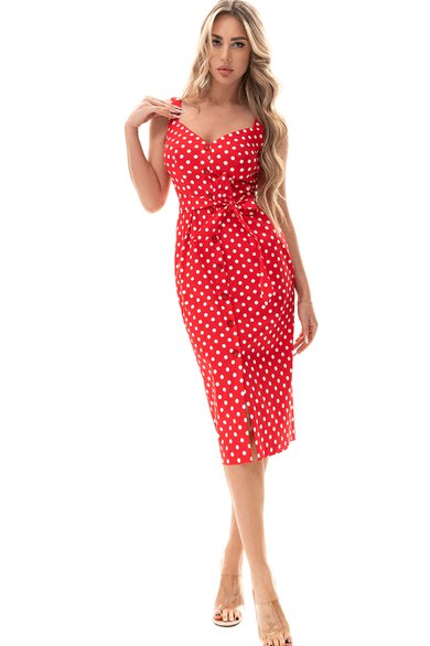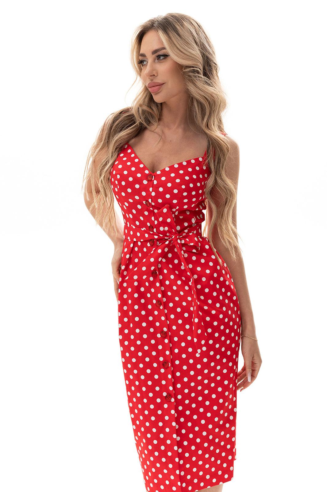Описание внешнего вида: Платье с центральной застежкой на петли и пуговицы, на широких бретелях. Платье отрезное по линии талии. Верхняя часть переда с талиевыми вытачками, нижняя часть переда с карманами и односторонними складками по талии. Нижняя деталь спинки с талиевыми вытачками. Платье со съемным поясом.