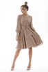 Описание внешнего вида: Платье без воротника, с круглым вырезом горловины, застежкой на потайную молнию в среднем шве спинки. Платье отрезное по линии талии. Верхняя часть переда с талиевыми вытачками. Спинка со средним швом, верхняя часть спинки с талиевыми вытачками. Окат рукава присборен. Платье со съемным поясом.