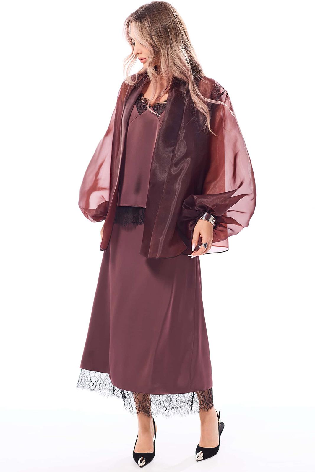 Туника без застежки, с отрезной планкой горловины. Плечо спущенное. Рукав длинный, с отрезной манжетой. По шву притачивания манжеты рукав присборен. Туника со съемным поясом.