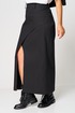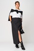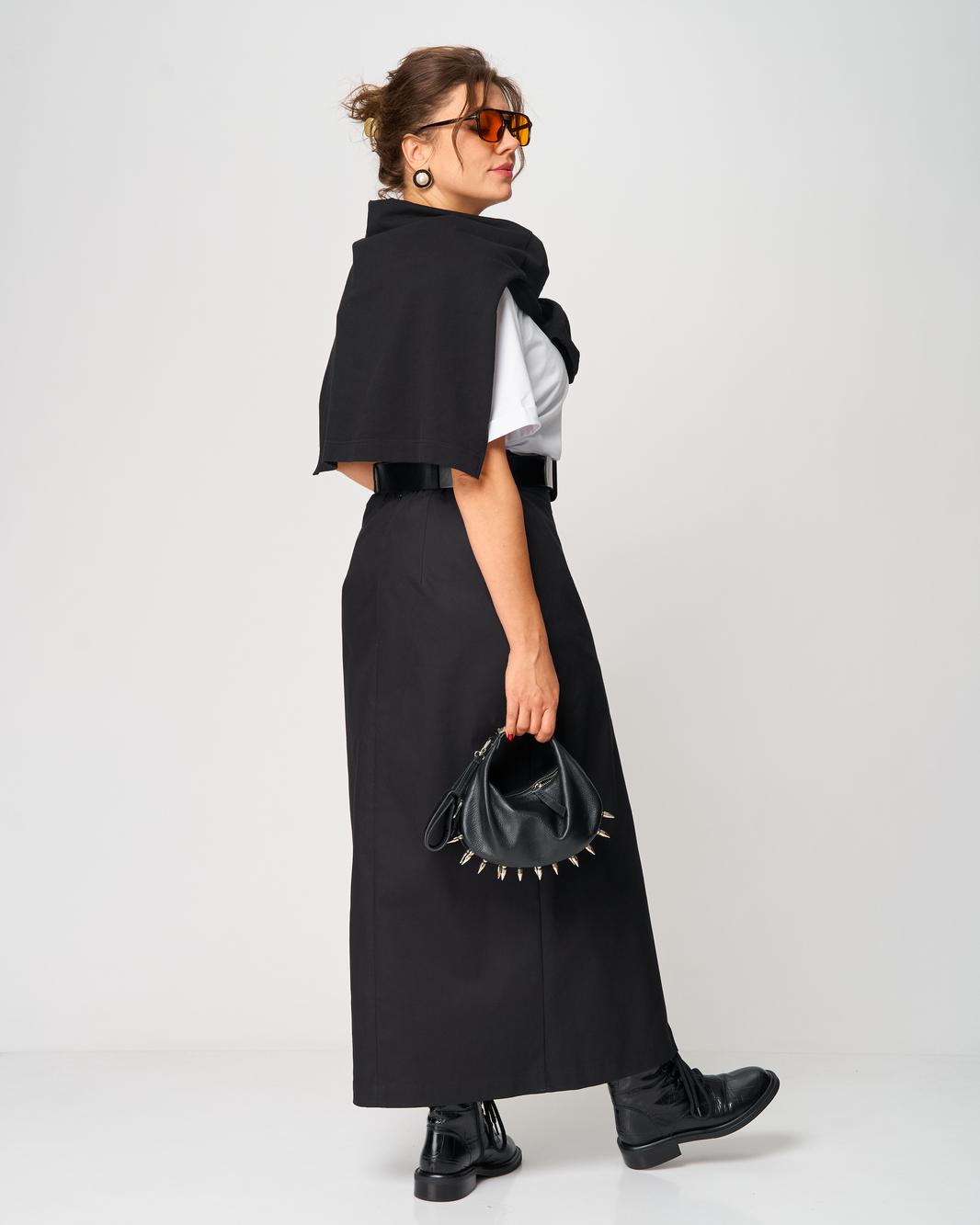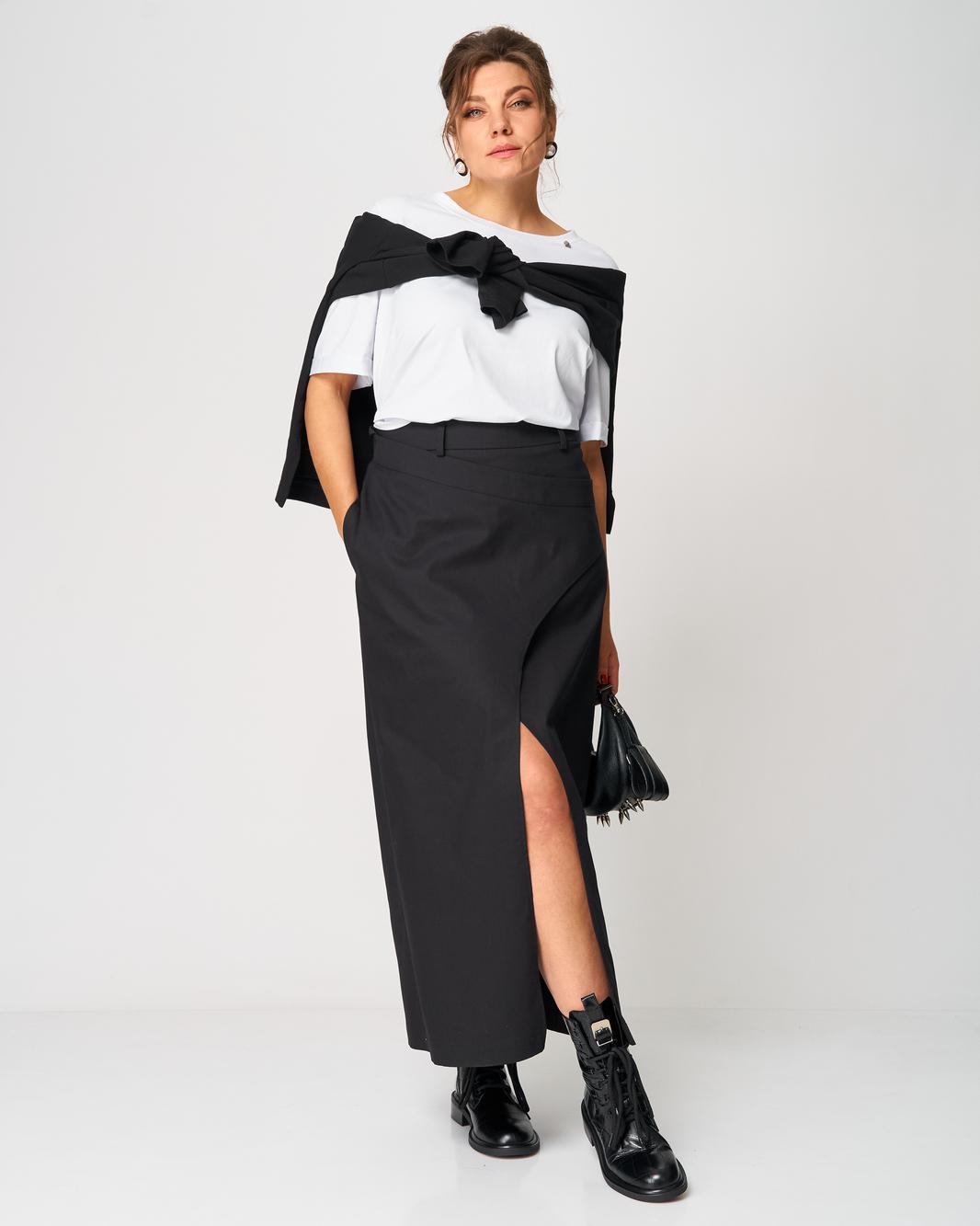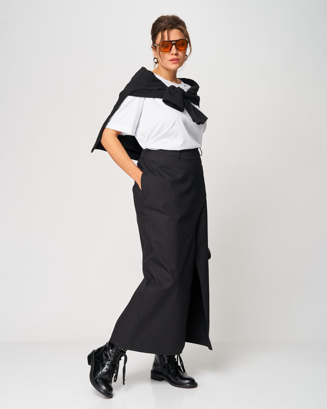 Особое внимание привлекает асимметричный линийный крой и выразительный длинный разрез спереди, который добавляет образу женственность, смелость и лёгкую нотку драматичности. Юбка выглядит одновременно современно, минималистично и очень утончённо, подходит как для будней, так и для особых выходов.