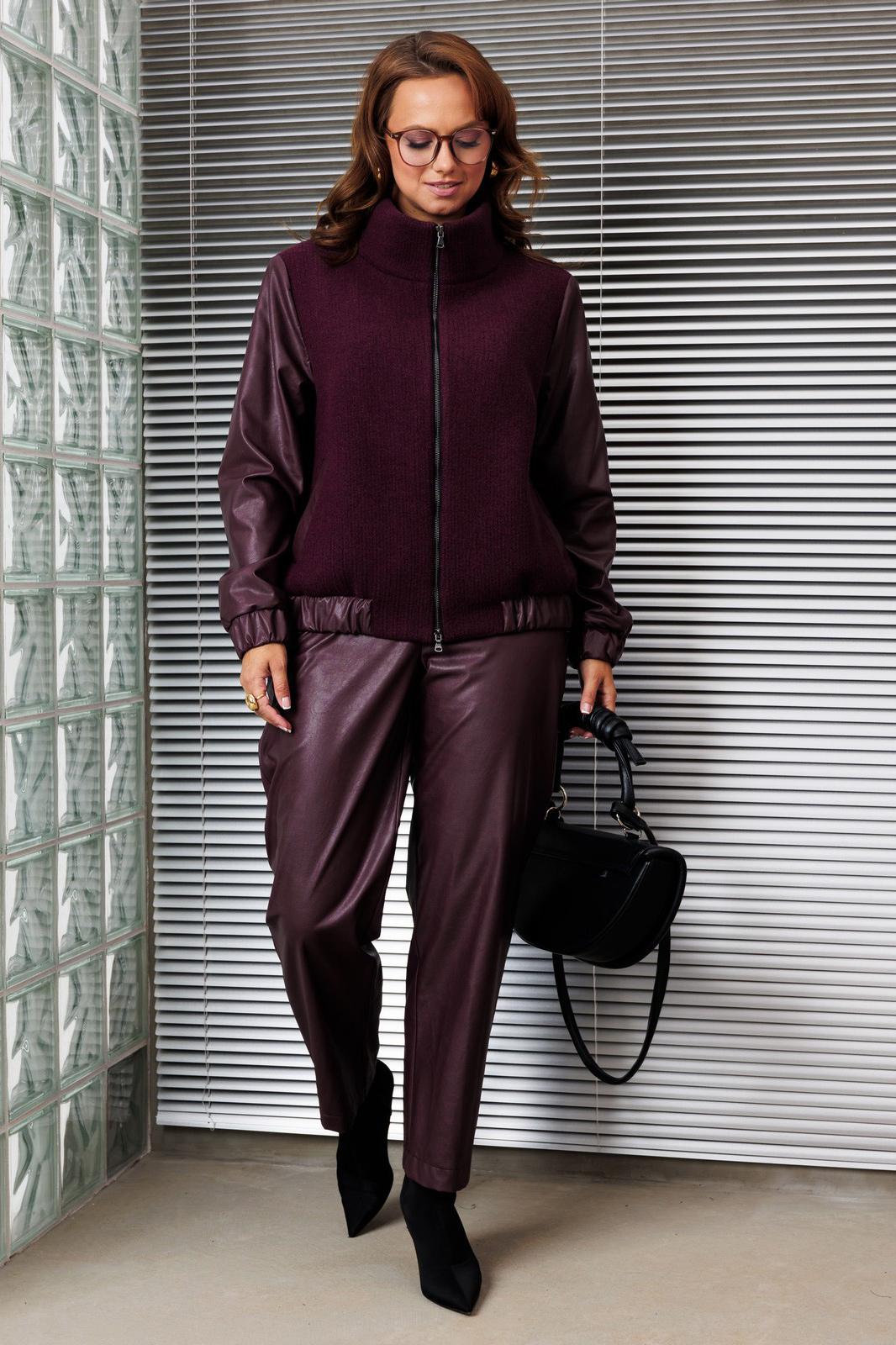 Жакет-бомбер свободного силуэта, выполнен в сочетании из двух тканей, горловина - стойка. Рукав втачной, на резинке по низу. По переду карманы с листочкой, по низу жакет на резинке. Застежка на тесьму-молнию. Изделие на подкалке.