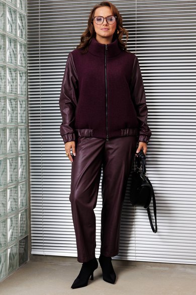 - Тип ткани: 15% шерсть, 70%вискоза , 15% полиэстер Кожа: лицевая сторона- 100% полиуретан, изнанка-100% хлопок. Брюки-лицевая сторона 100% полиуретан, изнанка 100% хлопок.