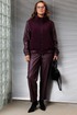 Брюки -бананы, выполнены из кожи на хлопке, по талии частично на резинке. В боковых швах карманы и накладные по заднему полотнищу. Застежка на тесьму-молнию.