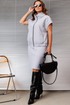 Юбка зауженная к низу, прилегающего силуэта. Пояс частично на резинке. По низу подрез, застежка на тесьму-молнию. Сзади разрез.