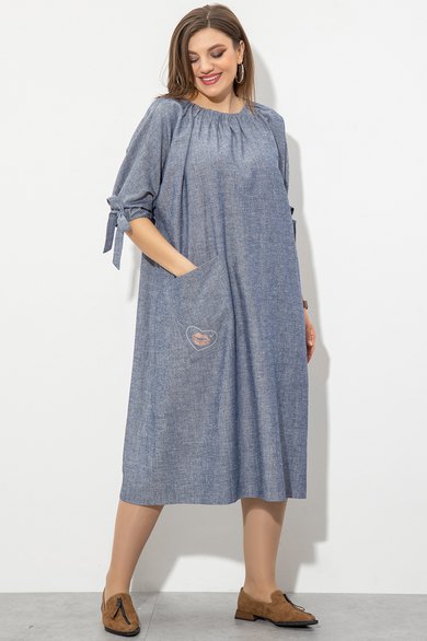 Платье – сколько нежных ассоциаций вызывает это слово. В этом образе вы будете себя чувствовать единственной и неповторимой. Платье свободного кроя, расширенное к низу, длиной до середины икры. По горловине вставлена эластичная тесьма. Горловина формы «лодочка». По переду с правой стороны настрочен ассиметрично накладной карман. Карман декорирован печатью. Рукава «летучая мышь», длиной до локтя. По низу рукава обработана кулиса и втянут шнур из основной ткани.