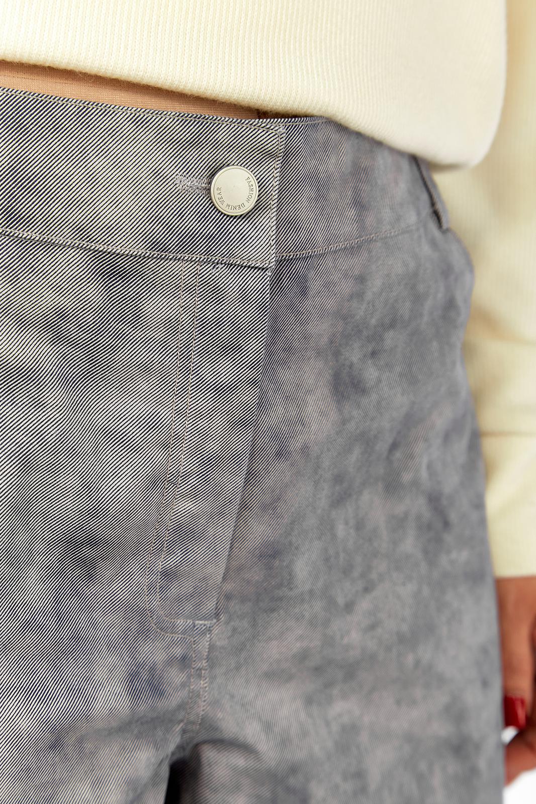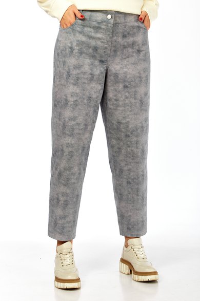 Брюки женские, изготовлены из хлопковой костюмной ткани под джинс. В брюках обработан пояс, застежка на тесьму-молнию и петлю-пуговицу. На задней части брюк кокетка и накладные карманы. На передней части боковые карманы.