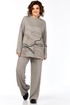 Костюм брючный двухпредметный изготовлен из трикотажного полотна. Состоит из джемпера и брюк. Джемпер свободного кроя. Горловина обработана воротником-стойкой. По переду, спинке и рукаву — вышива шнуром. В боковых швах внизу обработаны разрезы. Рукава спущенные длинные. Брюки прямого силуэта, обработан пояс на резинке. В брюках имеются карманы.
