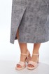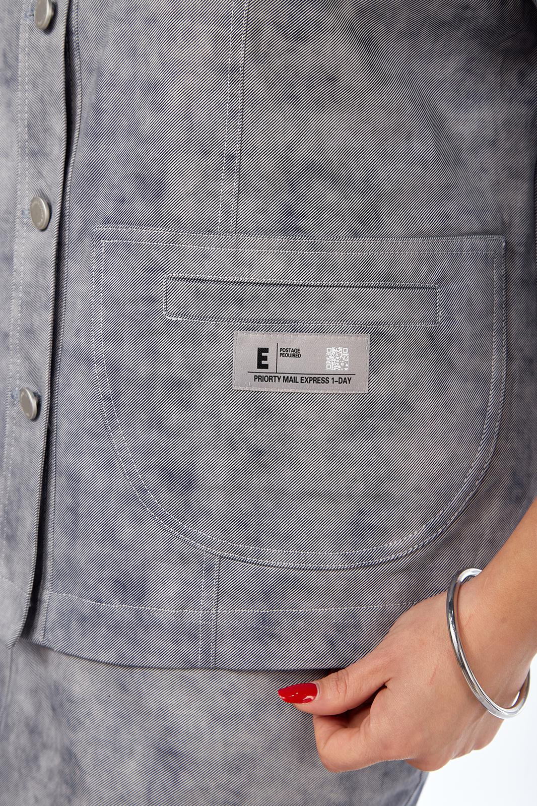 Костюм женский 2х-предметный, состоит из жакета и юбки, выполнен из хлопковой костюмной ткани. Жакет прямого силуэта, с центральной бортовой застежкой на петли и джинсовые пуговицы. Горловина округлой формы с отрезной обтачкой. По переду обработаны рельефы и накладные детали фигурной формы, в которых выполнены карманы. На спинке обработаны рельефы и кокетка. Рукава спущенные, с широкой подгибкой низа. Изделие дополнено по спинке дизайнерской вышивкой. Юбка прямого силуэта с притачным поясом, с застежкой на петлю с пуговицей и молнию. Передние и задние детали юбки разрезные. По переду обработаны боковые карманы.