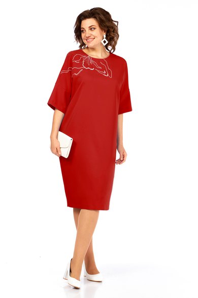 Платье женское, нарядное свободного силуэта. Выполнено из ткани костюмно-плательного ассортимента. Горловина округлой формы. Перед цельнокроеный дополнен дизайнерской вышивкой. Спинка со средним швом в котором обработана застежка на навесную петлю и пуговицу. Рукав спущенный.