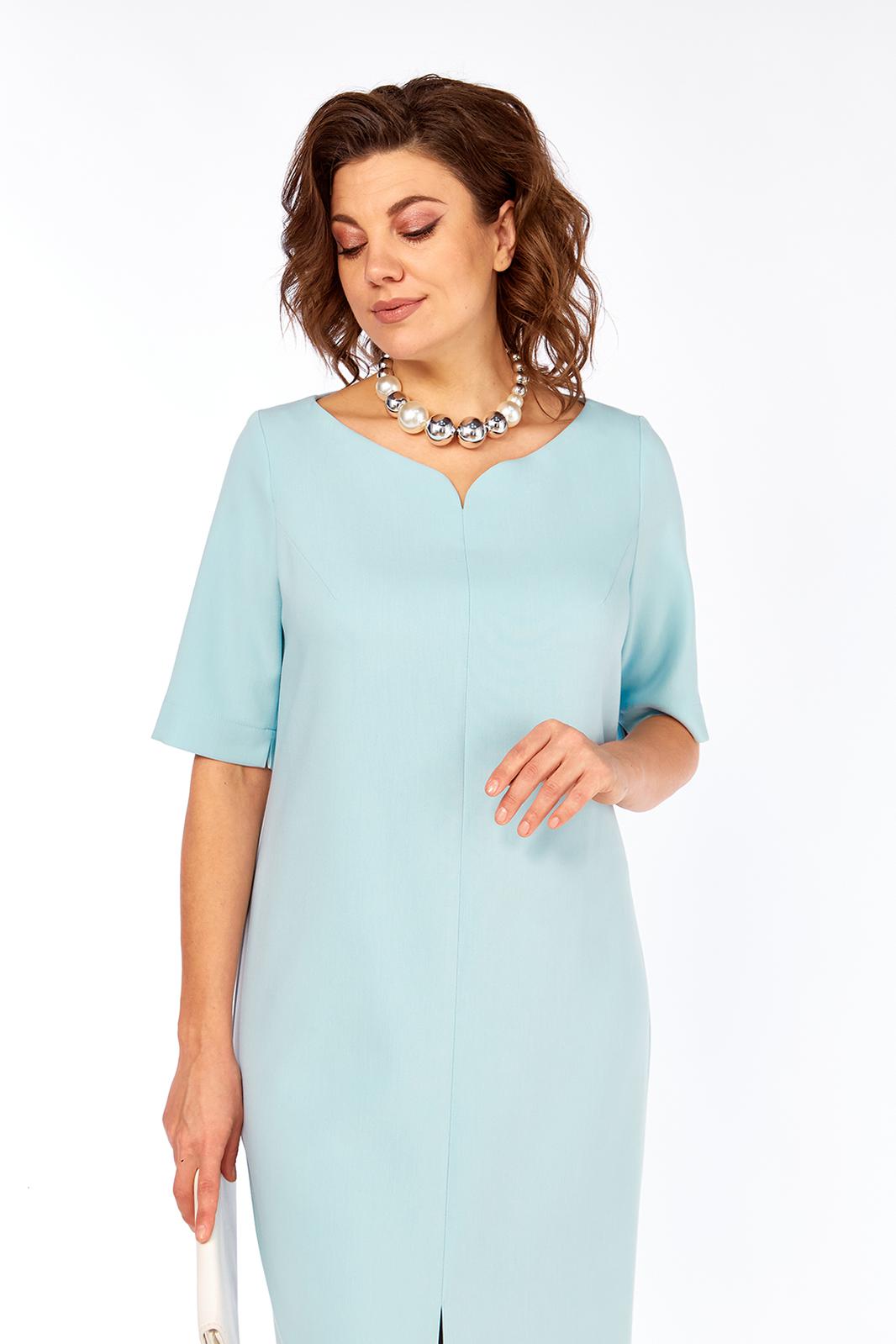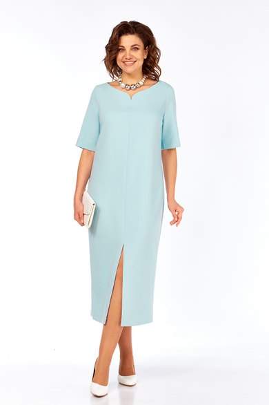 Платье женское , полуприлегающего силуэта, выполнено из плательно-костюмной ткани. Горловина фигурной формы. Перед с нагрудными вытачками и средним швом в котором обработан разрез. Спинка со средним швом. Рукава втачные, одношовные с небольшим разрезом по шву.